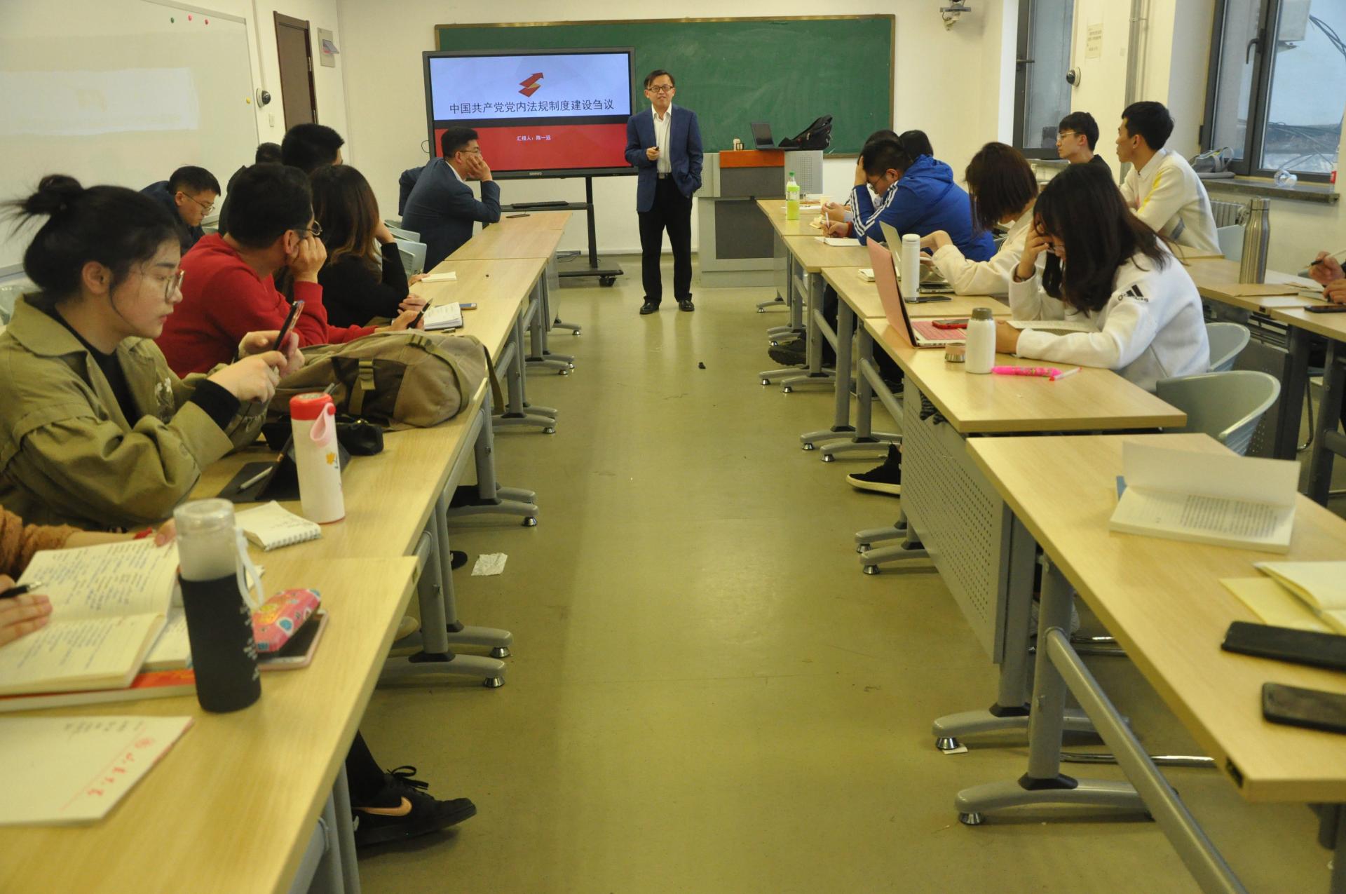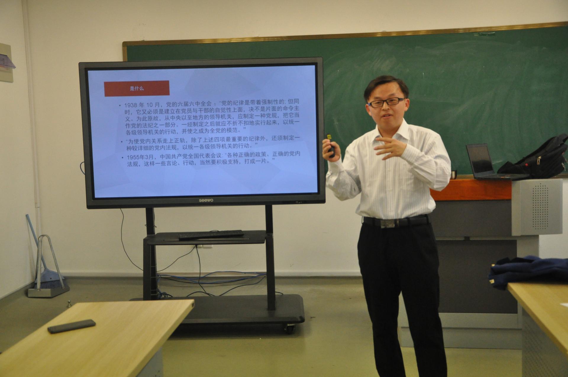报告伊始,陈一远从中国共产党党内法规制度建设理论滞后于实践的现实状况出发,为我们点明了中共党内法规制度建设学术化、学科化、学理化的重要性。接着,他以“是什么”“为什么”“怎么办”三方面为切入点,为我们详细阐述了今天的报告内容。首先,在“是什么”方面,从概念的提出到如今内涵的丰富与完善,陈一远为我们大致梳理了我国党内法规制度的发展历程,他指出,“我们现在讲党内法规,不仅仅要看到它的条例、条文等静态方面,更要从实践、发展的动态的角度去理解和把握它。”其次,在“为什么”方面,他表示,要从中国语境上来考虑问题:治国必先治党,要注重历史、现实和未来的内在联系,统筹推进依法治国和依规治党;治党务必从严,要聚焦问题、解决问题;从严必依法度,要贯彻法治精神,推进管党治党方式的转变。最后,在“怎么办”方面,陈一远结合许多生动事例,总结提出了五点对策:定良规——提高党内法规制度质量;重实施——让制度、纪律成为带电“高压线”;强监督——确保出台一个执行落实好一个;促公开——建立健全党内法规公开制度;实保障——让党内法规制度建设保障体系更加有力。