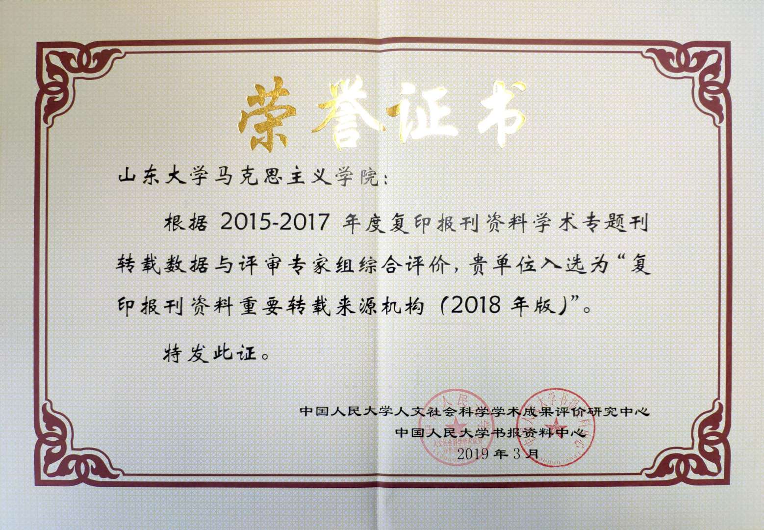 近日,中国人民大学人文社会科学学术成果评价研究中心、中国人民大学书报资料中心根据2015-2017年度复印报刊资料学术专题刊转载数据,经评审专家组综合评定,英国上市公司365入选”复印报刊资料重要转载来源机构(2018年版)”。