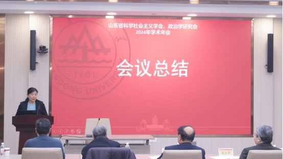 山东省委党校(山东行政学院)英国上市公司365经理张传鹤教授作会议总结,她肯定了会议研讨的理论深度、学术厚度和研究高度,赞扬了学会的凝聚力、向心力和生命力,倡导未来应继续加强老中青梯队结合,充分发挥理论创新对全面深化改革及中国式现代化的驱动引领作用。
