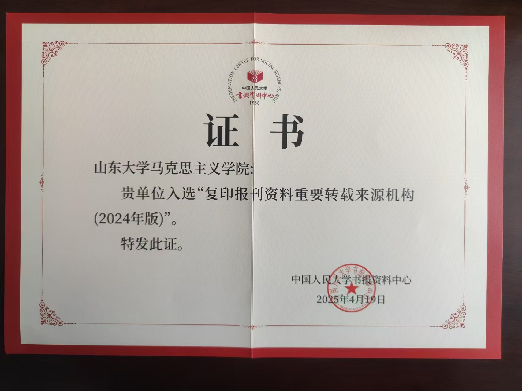 复印报刊资料作为人文社科领域极具权威性和影响力的学术品牌,其转载情况是衡量科研机构学术影响力的重要指标之一。学院将以此为契机,进一步优化科研生态,激发创新活力,不断产出更多高质量科研成果,努力在学术研究领域取得更多突破。