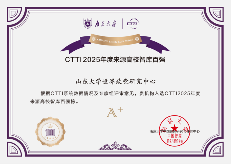 二是夯实平台建设基础,提升智库综合效能。以提升智库影响力为目标,中心扎实推进各类平台升级工作:发挥官方网站作用,开设特色专栏常态化发布研究动态与标志性成果,打造高效学术交流窗口;主办第十四届“中国政党研究论坛”,吸引国内外知名学者深度参与,巩固学科引领地位;持续运营系列品牌论坛,深化国际学术交流合作,先后邀请美国、越南等国家政党研究领域专家学者开展专题研讨,进一步提升了中国政党研究国际话语权。平台建设的扎实推进收获显著成效,2025年11月,中心成功入选CTTI(中国智库索引)年度高校智库百强榜A+等级,标志着综合实力与行业影响力获业界高度认可,也为咨政服务赋能增效奠定了坚实基础。
