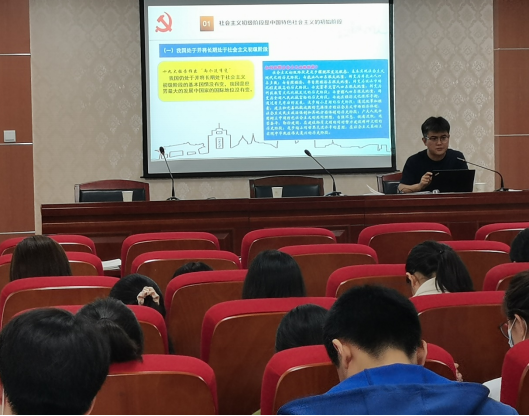 开班仪式结束后,肖成俊老师为全体入党积极分子上了本期培训班第一堂专题党课,即“肩负历史使命,积极加入中国共产党”。肖成俊老师结合实际情况,首先从历史发展逻辑上阐释了社会主义初级阶段的基本理论、基本路线、基本纲领,进而引申出“两个一百年”奋斗目标的发展方针,从各个方面和不同层次诠释了“两个一百年”奋斗目标的阶段性要求。从而进一步阐释了中国共产党党员“为中华民族伟大复兴的中国梦而奋斗”的历史使命。