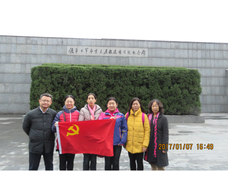2017年1月7日—1月8日,道德与法律教研室党支部党员前往侵华日军南京大屠杀遇难同胞纪念馆、雨花台烈士陵园,追寻红色足迹,接受革命传统教育,感悟不屈抗争的爱国主义精神及时代意义。