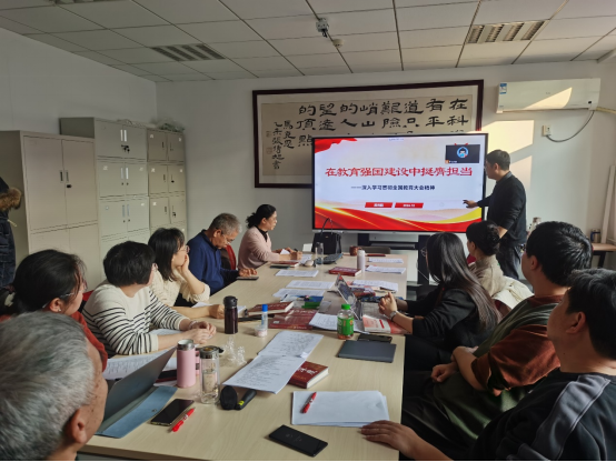 为深入学习贯彻全国教育大会精神,进一步提高教师党员的政治素质和责任意识,引导教师党员深刻把握新时代教育的方向与任务。12月20日下午,习近平新时代中国特色社会主义思想概论教研室党支部开展“深入学习贯彻全国教育大会精神”专题党课。党支部书记段光鹏以《在教育强国建设中挺膺担当》为题进行讲解,党支部全体党员参加学习。