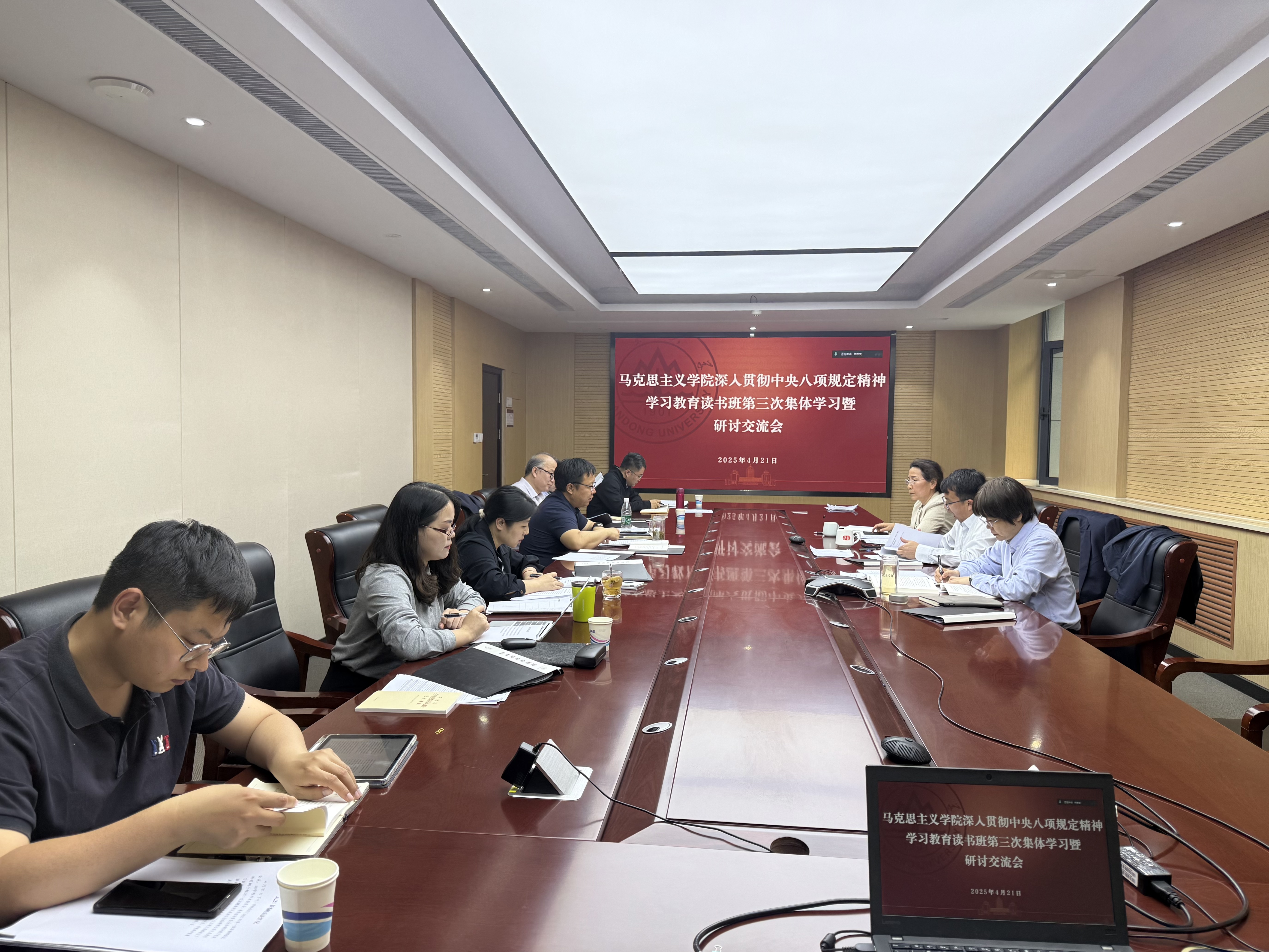 党委副书记王海宁领学《习近平关于加强党的作风建设论述摘编》第八和第九专题。他表示,以风清气正的政治生态引领形成正气充盈的社会生态,能有效促进社会风气的正向转变,提升社会的道德水平和文明程度,为中华民族伟大复兴提供有力支撑。要以全面从严治党夯实党风根基,以示范引领推动风尚转化,以文化浸润滋养社会生态,以身作则带头践行中央八项规定精神,推动形成崇德向善、争做先锋的浓厚氛围。要进一步健全作风建设常态化长效化工作机制,继续在常和长、严和实、深和细上下功夫,不断把学院制度成果转化为治理效能,以制度之治促进作风建设常治长效。