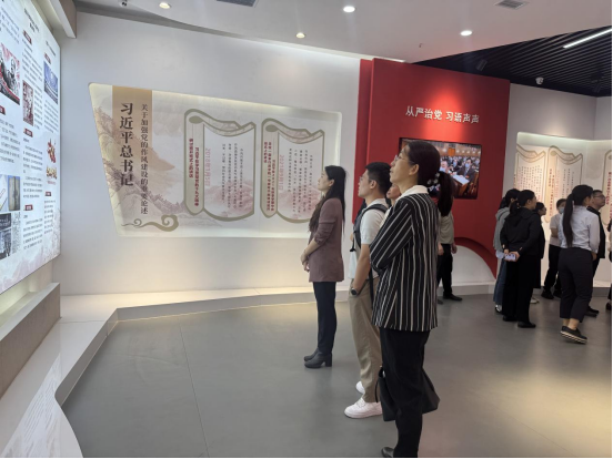 在历城区全面从严治党警示教育展厅,支部成员在讲解员引导下,系统回顾了党的十八大以来党中央推进反腐败斗争的辉煌历程。展厅内,"利剑高悬""警钟长鸣""清廉齐家"等主题展区,通过图文展板、实景还原、多媒体互动等形式,生动呈现了10余个违纪违法典型案例,以近年来违反中央八项规定的典型案例为镜鉴,引发在场教师深刻反思,在场教师纷纷表示必须以更高标准守牢师德底线。