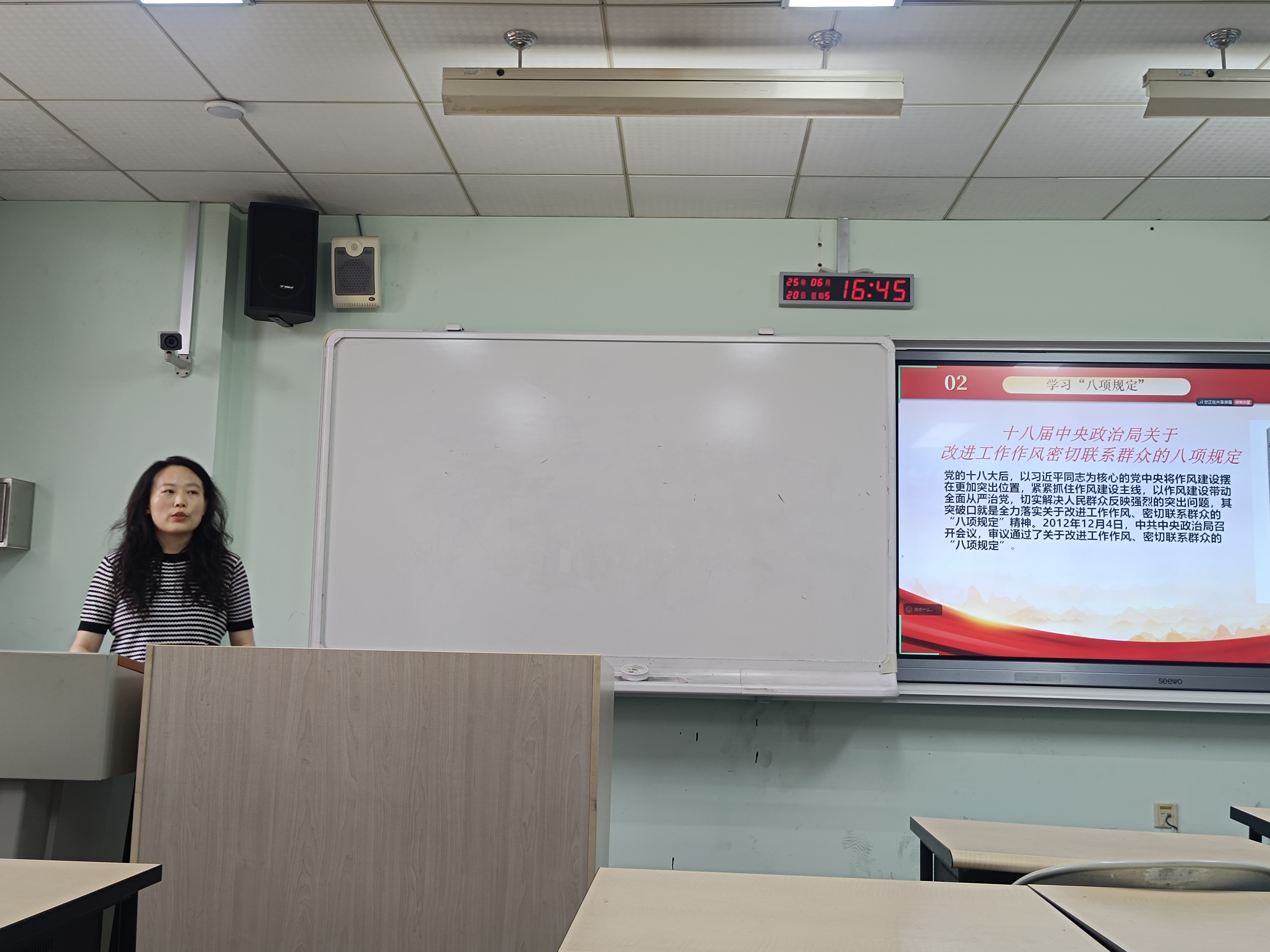 活动由国际教育学院布莉莉主持。她介绍了本次联学共建活动的意义与目标,强调要通过此次活动,将八项规定精神融入课程思政建设,共同探索思政课程与课程思政协同育人的新路径。