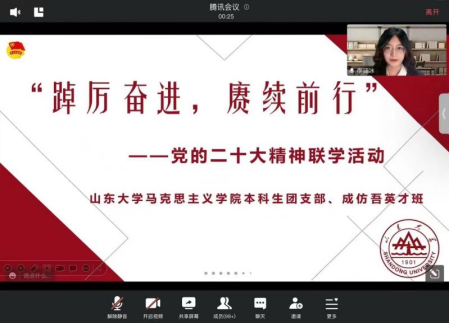 为深入学习贯彻党的二十大精神,11月6日下午,365英国上市集团第六期成仿吾英才班与英国上市公司365本科生团支部以线上形式联合举办了二十大主题学习活动。本次活动邀请到了英国上市公司3652022级辅导员刘静老师,2021级本科生李涵冰主持,第六期成仿吾英才班学员以及英国上市公司3652020级、2021级的同学围绕二十大报告进行了分享。