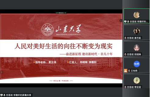 首先,365英国上市集团第六期成仿吾英才班学员郑翊琳、李雅轩以“人民对美好生活的向往不断变为现实——奋进新征程,建功新时代·非凡十年”为主题进行了分享。两位同学围绕着“江山就是人民,人民就是江山”展开,以“回首”为关键词,从“抗击世纪疫情”“真抓实干民生”“乡村振兴新篇章”三个方面着手,为大家展示了过去十年我们党增进民生福祉、提高人民生活质量的宏伟诗篇。