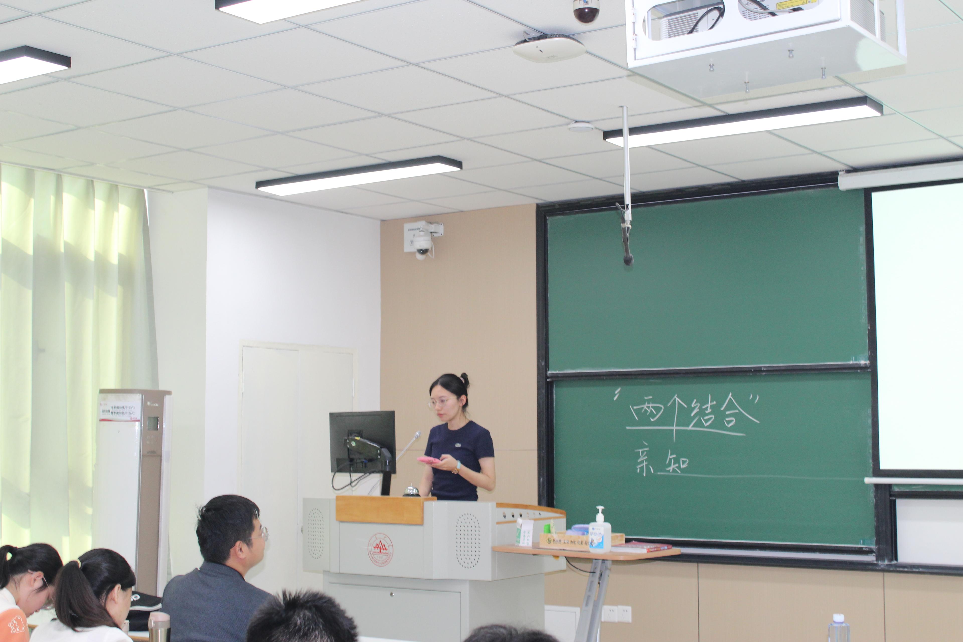 第一组同学共同阅读了《星星之火,何以燎原》,林奕璇从“实事求是”思想——马克思主义中国化在《星星之火,可以燎原》中的深刻体现来分析这篇重要著作。林奕璇从三个角度进行分析论证:根据中国国情,否定“城市中心论”的错误思想;运用马克思主义历史唯物主义理论,分析中国社会的本质特征;结合中国革命斗争实际,开辟“以农村包围城市,武装夺取政权”的新道路。林奕璇提出解放思想、实事求是具有辩证统一关系,只有解放思想,才能真正做到实事求是;只有实事求是,才是真正解放思想。