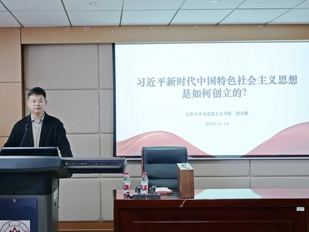 述往思来,向史而新。段光鹏老师从百年党史中的几次关键会议讲起,介绍了习近平新时代中国特色社会主义思想的历史来源,加深了同学们对“习近平新时代中国特色社会主义思想是马克思主义中国化新飞跃”的理解,鼓励同学们以历史视角体悟理论之创新、感受思想之先进。
