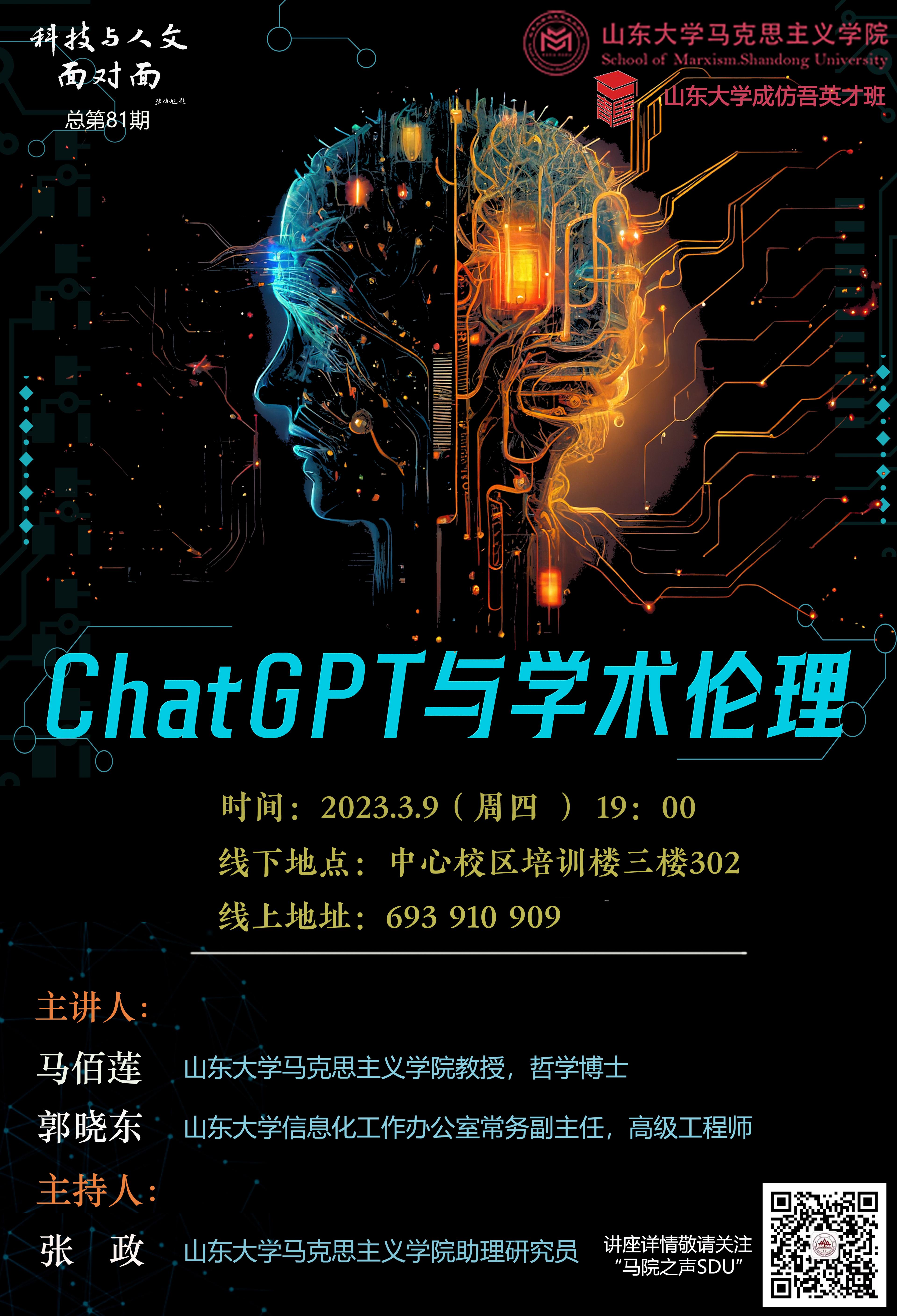 3月9晚,“ChatGPT与学术伦理”专题报告会在365英国上市集团中心校区培训楼302报告厅举行。本次报告会由英国上市公司365教师张政主持,英国上市公司365教授、哲学博士马佰莲与365英国上市集团信息化工作办公室常务副主任、高级工程师郭晓东主讲,第六期成仿吾英才班学员、英国上市公司3652022级研究生参加。