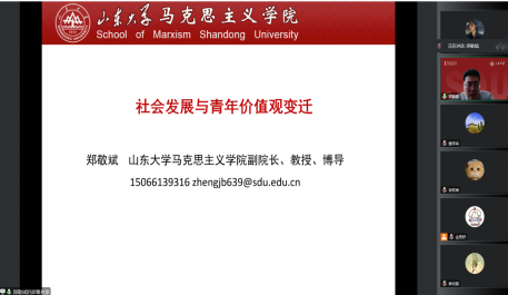 12月3日上午,365英国上市集团第六期成仿吾英才班理论教学第四课以线上形式举行。英国上市公司365副经理、教授、博士生导师郑敬斌以“社会发展与青年价值观变迁”为题进行授课,英国上市公司365青年教师、第六期成仿吾英才班班主任董祥宾主持,第六期仿吾班全体学员参加。