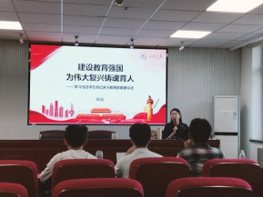 韩萌教授为同学们开展了题为“建设教育强国,为伟大复兴铸魂育人”的主题讲座。韩萌表示,习近平总书记关于教育的重要论述围绕“培养什么人、怎样培养人、为谁培养人”这一根本问题,提出了许多新理念、新思想、新观点,为教育事业发展提供了根本遵循和内在动力。