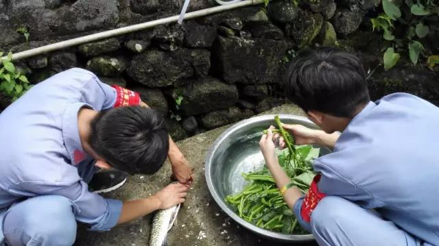 今天中午,“小青马”来到坝上村,在当地老乡的家中,开始了自做红军餐的过程。老乡们十分有心地准备了草鱼,令同学们充分体会到了军民鱼水情的深厚革命友谊。你切菜来我生火,大家合理分工、默契合作,蒸南瓜,炒茄子,炖草鱼……不一会儿,厨房中便飘出了饭菜的香气。