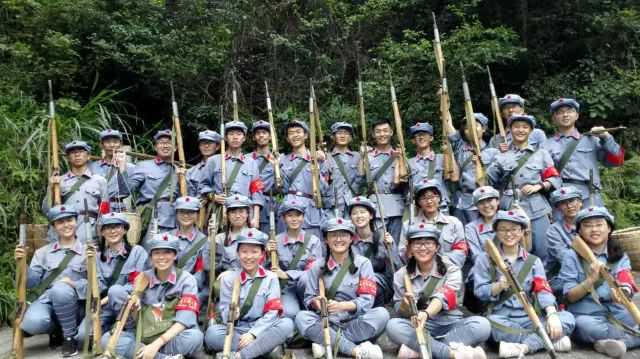 当我们穿上红军服装,重走当年朱毛挑粮小道的一段,虽然只是一小段,还是让我们大汗淋漓,不由唏嘘当年创业艰难,感叹现在时光美好。重走挑梁小道,不仅仅是对我们体力和耐力的小检验,更引发我们对如何走好今天的道路深思。穿行林间,当年毛委员、朱老总还有挑粮战士们的身影仿佛依然在这里跃动,那一个个奔走的身影,是对新中国诞生坚定不移的盼望和实践,那坚实的脚印好像还镶嵌在这小道上,指引我们前进的道路。重走挑粮小道,不由感慨意志坚定之重要,在物质条件渐渐改善的今天,这品质更显得弥足珍贵。向历史致敬,向历史上辉煌的汗水致敬!
