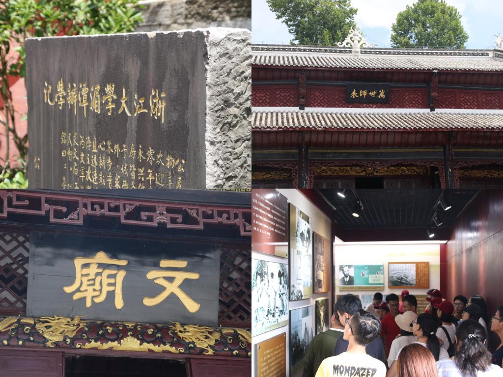 湄潭浙江大学旧址位于贵州湄潭县湄江镇和永兴镇,原有文庙、天主堂等25处,现保存较好的主要有9处,其中便包括同学们前往参观学习的湄潭办公室图书室旧址”文庙”。抗战期间,浙江大学师生在时任董事长竺可桢的率领下,怀着“教育救国,科学兴邦”的理想,踏上漫漫西迁路程。历时两年多,穿越江南六省,走过2600公里,浙大师生终于于1940年抵达遵义、湄潭、永兴,在此坚持办学直至抗战胜利,谱写了一部伟大的“文军长征”史。
