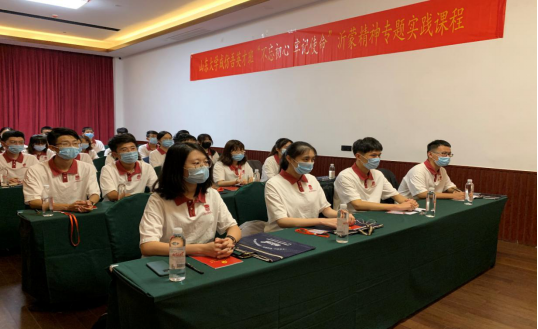 到达学习基地并用过午餐后,仿吾班小青马们身着班服,参加了本次学习活动的开班仪式。在开班仪式上,班主任李磊老师表示,来沂蒙地区开展国庆实践教学,就是为了重温那段红色的记忆,传承伟大的沂蒙精神。同时,他向全体学员提出了三点期待:一是要树立正确的学习态度,要怀着一颗敬仰之心,去追寻一段红色足迹,去感悟一种革命理想,去探寻一种精神真谛;二是要学思践悟沂蒙精神,结合内容丰富、形式灵活的现场教学加深对沂蒙精神基本内涵的理解,认清沂蒙精神的特质就是“水乳交融、生死与共”;三是要从沂蒙精神中汲取精神滋养和前行力量,在学习中坚定青年马克思主义者的理想信念、在实践中挑起新时代青年的使命担当,为实现“两个一百年”奋斗目标和中华民族伟大复兴中国梦贡献智慧和力量。