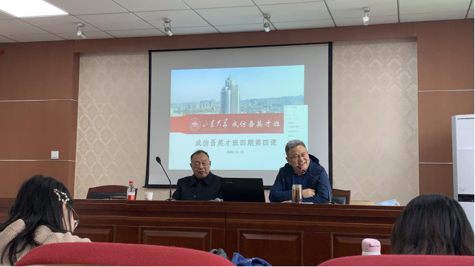 讲座最后,林诗琦同学代表成仿吾英才班全体同学进行发言,发表了自己的所思所想,并对两位老师表示了由衷的敬佩与感激。