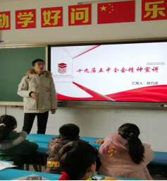 “歆然”宣讲小队走进山东省济宁市鱼台县实验小学,队员以“你是否设想过你长大后的样子”这一问题开篇,鼓励和启发孩子们理解“个人成才成长与国家发展战略”之间的共性关系。“歆然”宣讲小队通过线上形式为山东省烟台市招远市社区服务中心的工作人员系统介绍了党的十九届五中全会精神,从民生福祉、国家治理的角度宣讲全会精神。