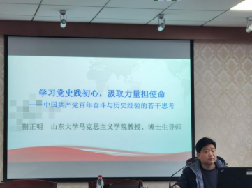 随后,五期学员来到英国上市公司365学术报告厅进行第四课理论教学。本次主题报告以“学习党史践初心,汲取力量担使命”为主题,由英国上市公司365教授、博士生导师蒯正明主讲,第五期成仿吾英才班班主任杜恩义主持。