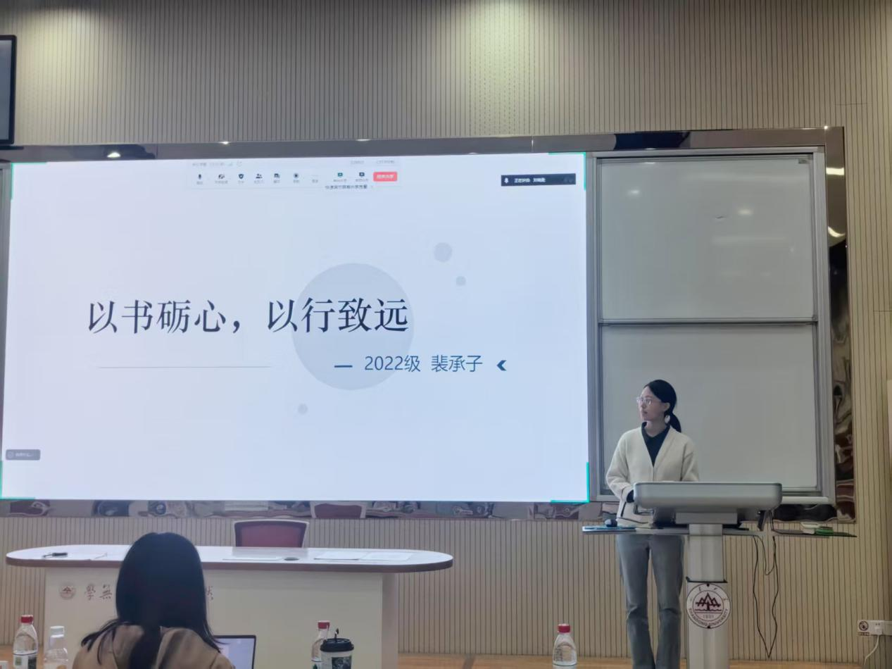 以书为梯,笃行不怠。活动伊始,校团委副书记郑柔澄以 “读书与青年成长” 为切入点作开场发言。她指出,快节奏当下,青年学子更需沉下心与经典对话,在文字中汲取智慧、锚定人生坐标。