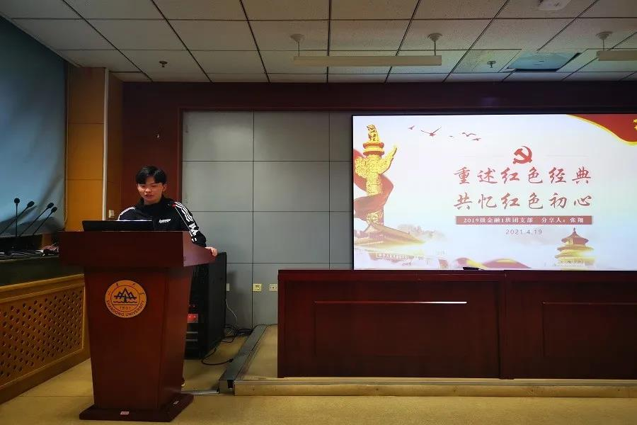 在经济学院分享部分,2019级各班员工代表紧扣时代脉搏,以历史事件或革命先烈的事迹为线索,结合自身经历,全方面地介绍党史故事。经济班的张少州同学以“隐形守护者-中央特科”为主题,介绍了中央特科建立的整个过程。接下来的国贸班员工代表李浩文以刘伯坚的经历为主线,讲述了革命先烈刘伯坚的英勇事迹。金融一班员工代表张翔用“忠实”“坚定”“勇敢”“负责”四个词,高度概括了革命先烈罗忠毅的一生。随后,金融数学班的员工代表滕雨欣和毛若彤带领大家回望往昔,追忆“吃水不忘挖井人”的感人故事。来自PPE班的白轶真结合学科特色,讲述中国社会主义经济建设者和奠基人之一陈云的主要事迹。财政一班的车虎从刘伯承元帅的视角讲述遵义会议对于我党我军我国革命的历史性意义。实验班的朱欣然同学则选择了陈望道翻译《共产党宣言》的故事。除此之外,中共一大、秋收起义以及延安整风运动等在中国共产党发展历程中的主要事迹也是同学们关注且感悟深刻的话题。