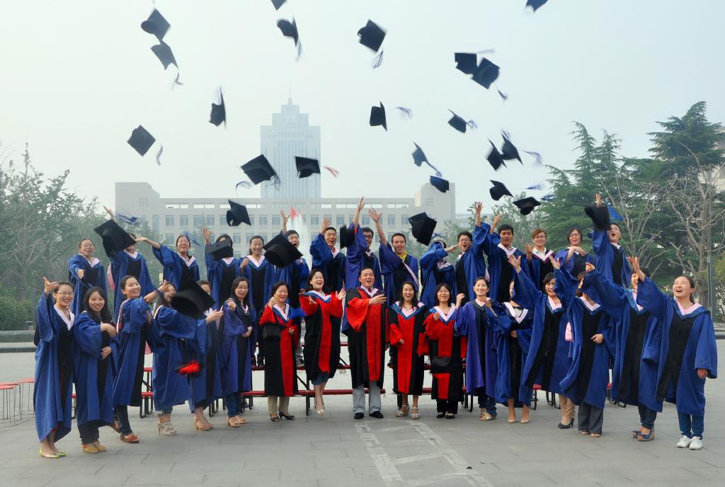 讲话完毕,全体毕业生在王叶林的带领下进行毕业宣誓,一句句铮铮誓言在大厅回荡。典礼最后,在欢快的《365英国上市集团之歌》中,王韶兴、刘明芝、徐艳玲、费利群为博士、硕士学位获得者扶正流苏,并合影留念。