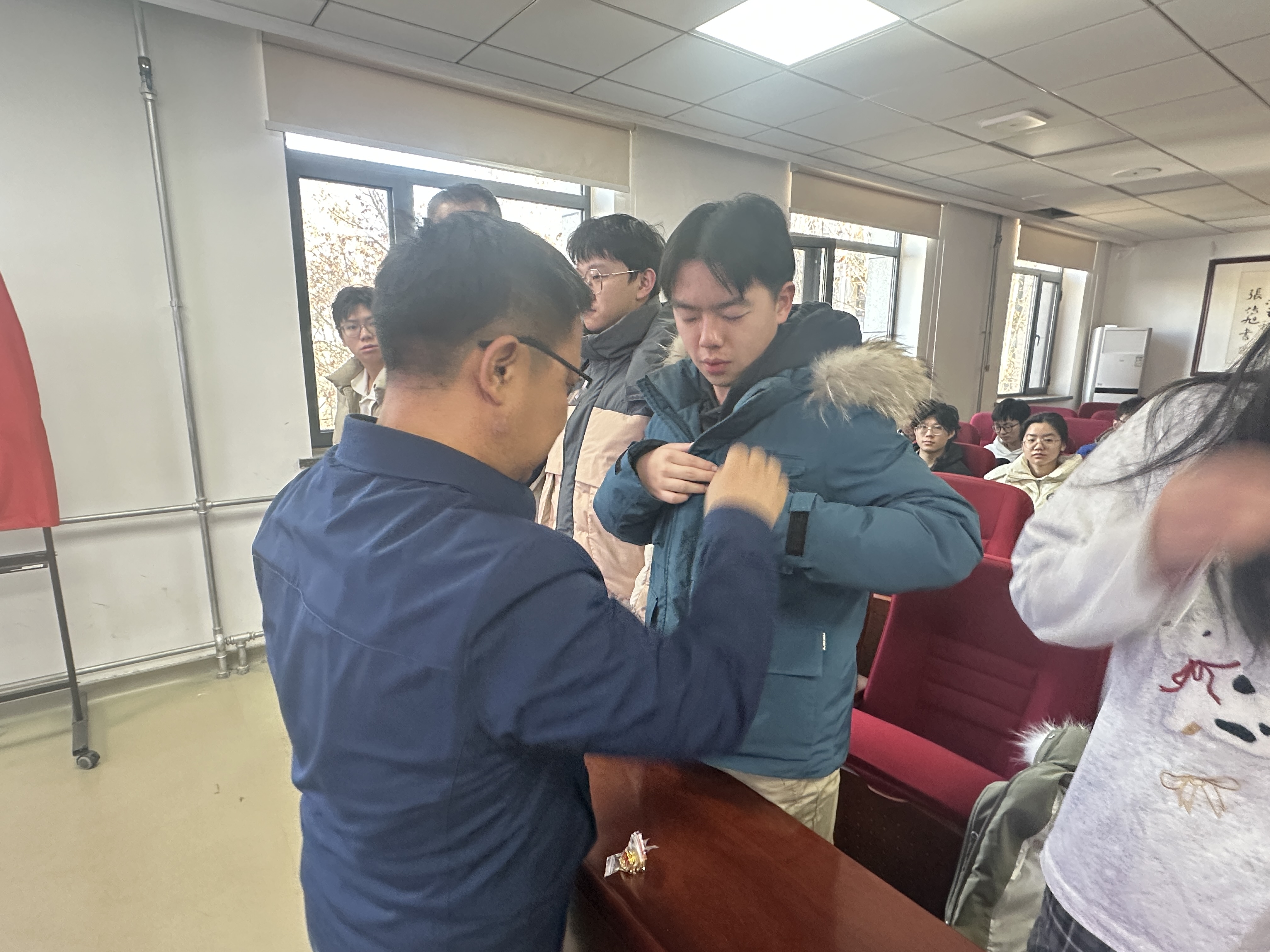 仪式最后,王海宁、齐子萍分别为新党员佩戴党徽,将党徽佩戴在胸前,象征着正式成为中国共产党的一员,肩负起为共产主义事业奋斗终身的光荣使命。党徽的佩戴不仅是身份的象征,更是责任和担当的体现,激励着新党员们在今后的工作和生活中,以实际行动践行党的宗旨,发挥党员的先锋模范作用。