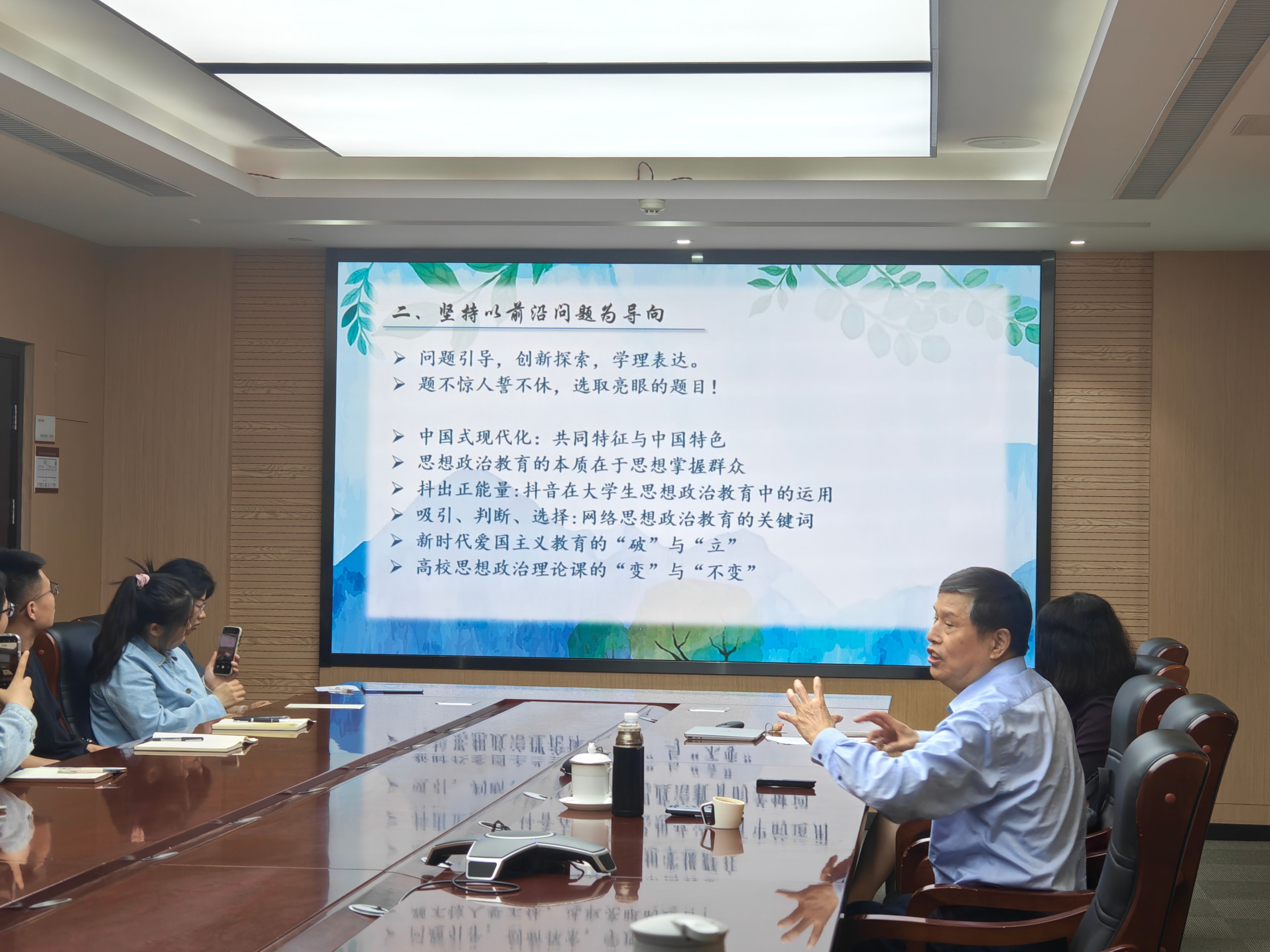 讲座结束之后,骆郁廷教授与青年教师进行了座谈,围绕“新时代科研能力的提升”,从坚持以团队建设为龙头、坚持以前沿问题为导向、坚持以科研创新为动力和坚持以严谨治学为遵循四个方面与青年教师进行了深入交流,并对青年教师课题项目申报如何选题进行了针对性辅导。