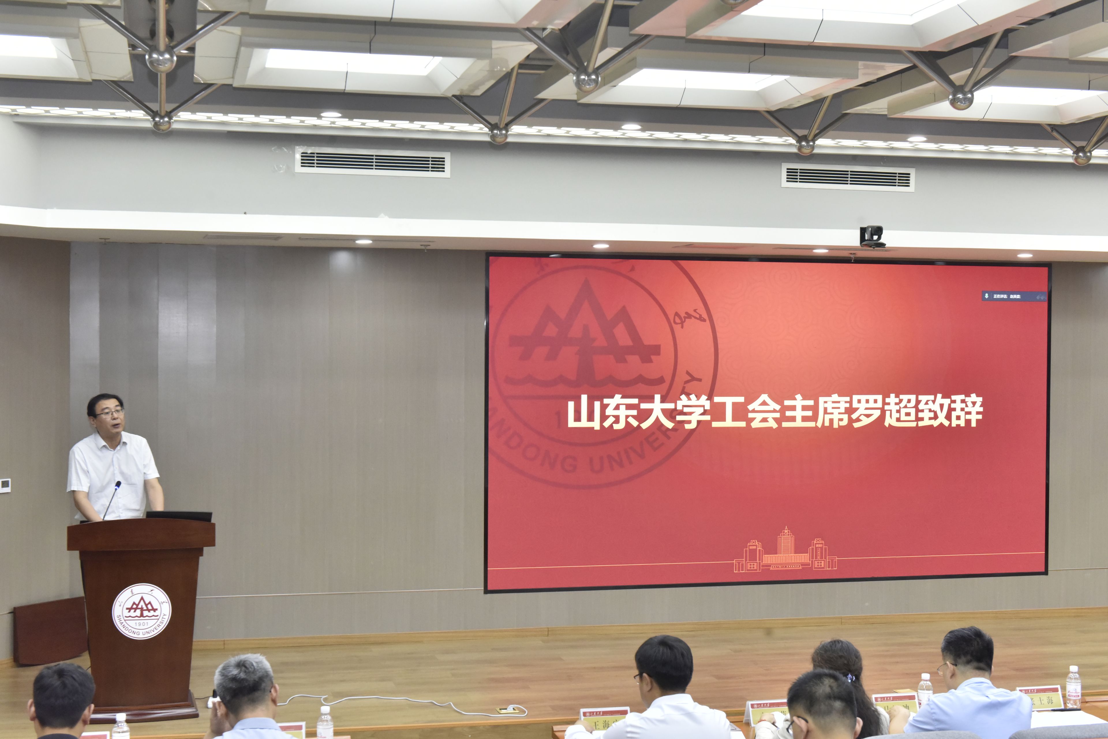 罗超代表学校工会向会议的召开表示热烈祝贺。他表示,学校工会将一如既往为学院发展提供全方位服务支持,在思想政治方面加强引导,为学院提供政策支持和保障,激励学院工会在实践中深化改革,进一步建机制、强功能、增实效,全面提升工作效能和水平。