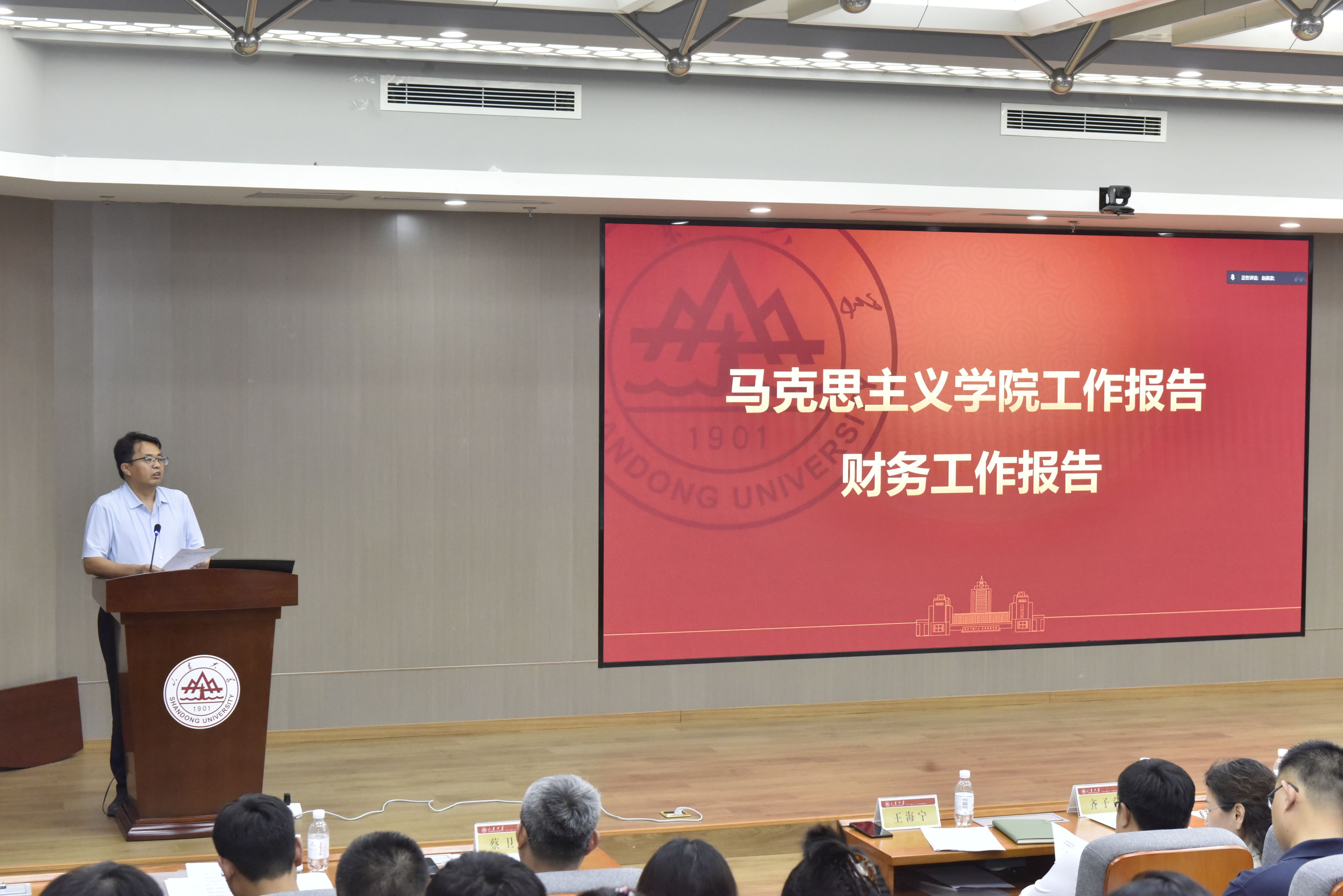 张士海作题为《凝心聚力 砥砺攻坚 奋力开启全国重点英国上市公司365建设新征程》的学院工作报告,系统总结了上届教职工大会以来的成绩和不足,分析面临的新形势新要求,从团队建设、思政课教学、人才引育、有组织科研、员工培养、社会服务、治理体系等方面对开启全国重点马院建设新征程作出部署。他还就学院财务工作进行了汇报。