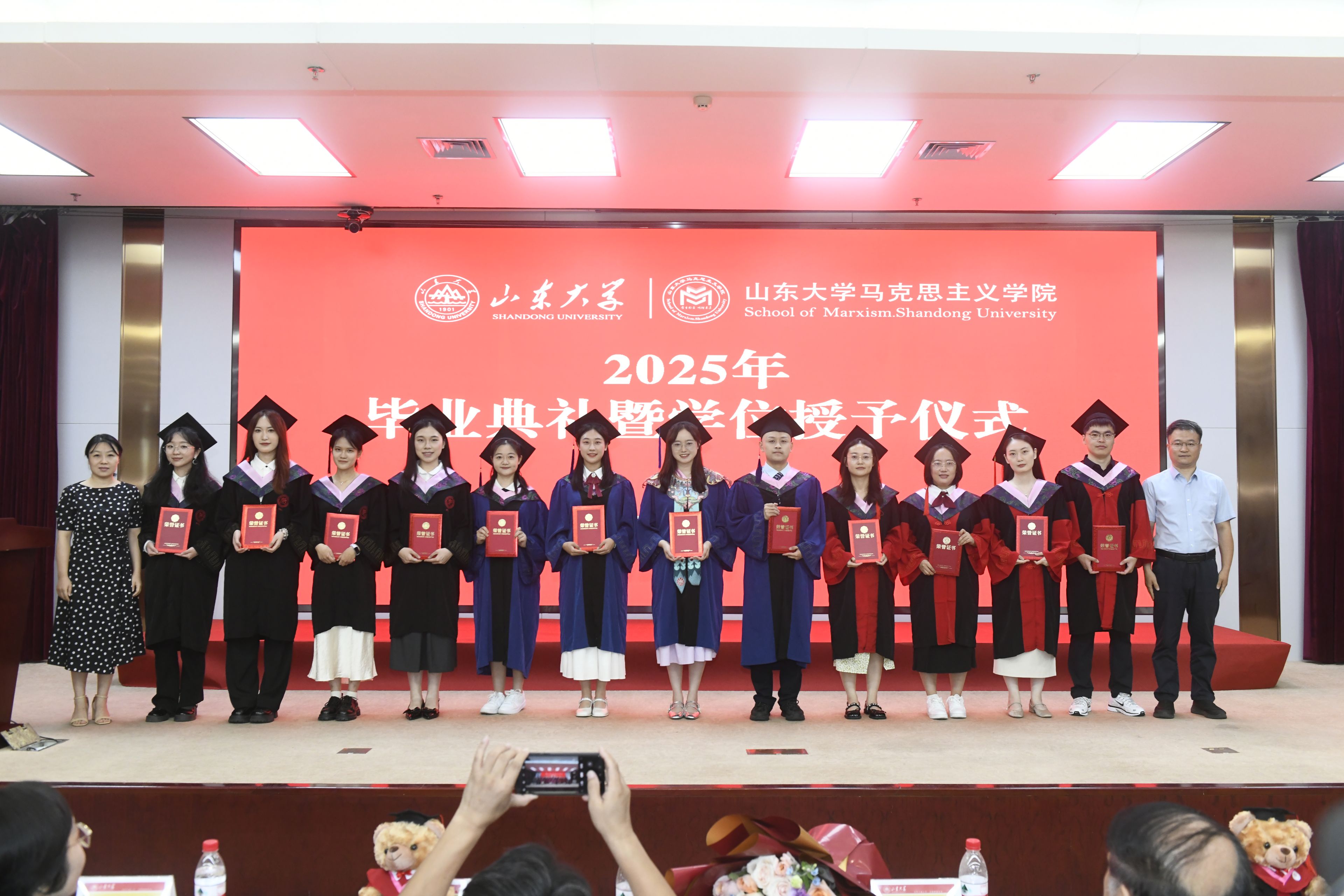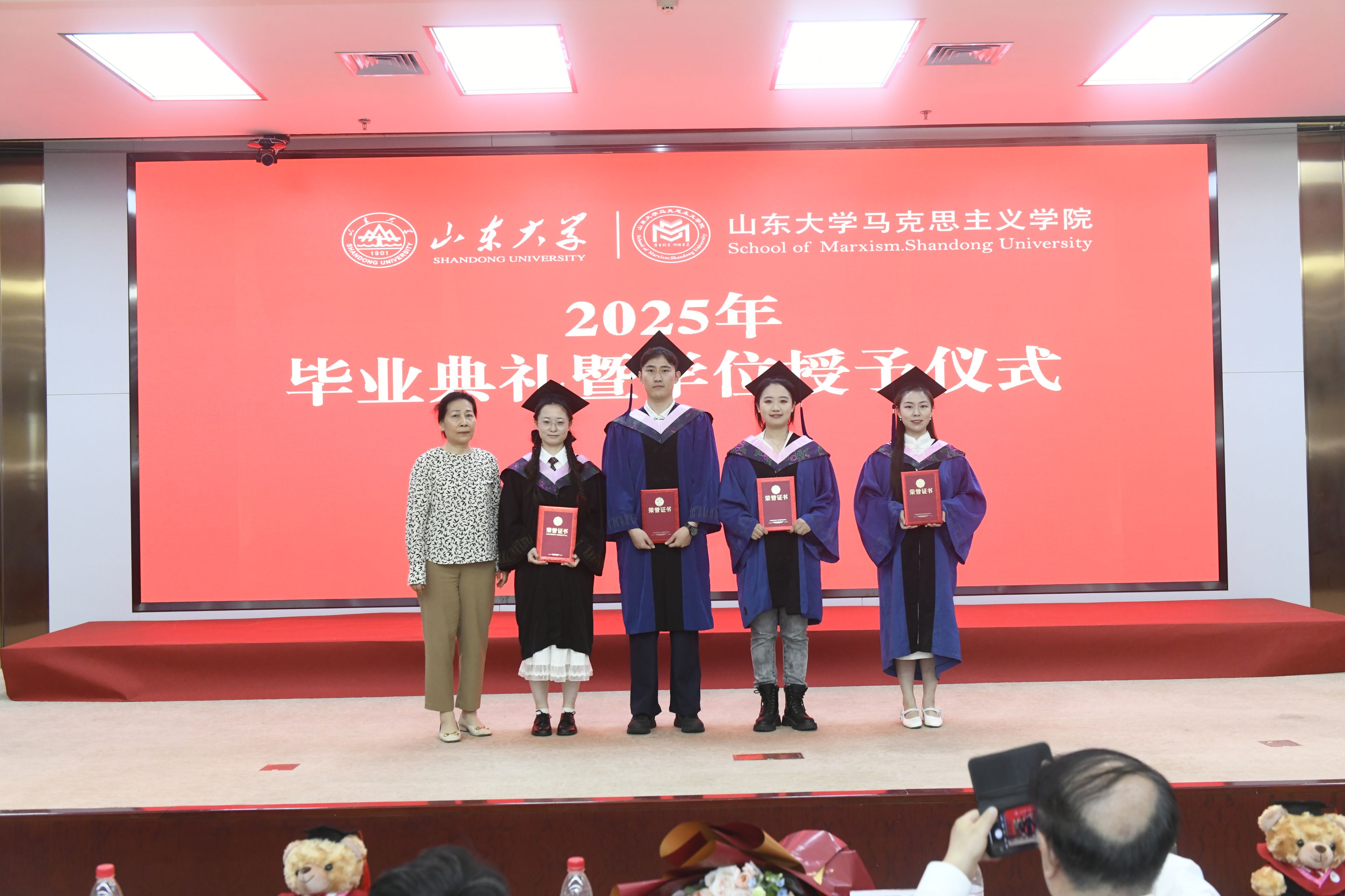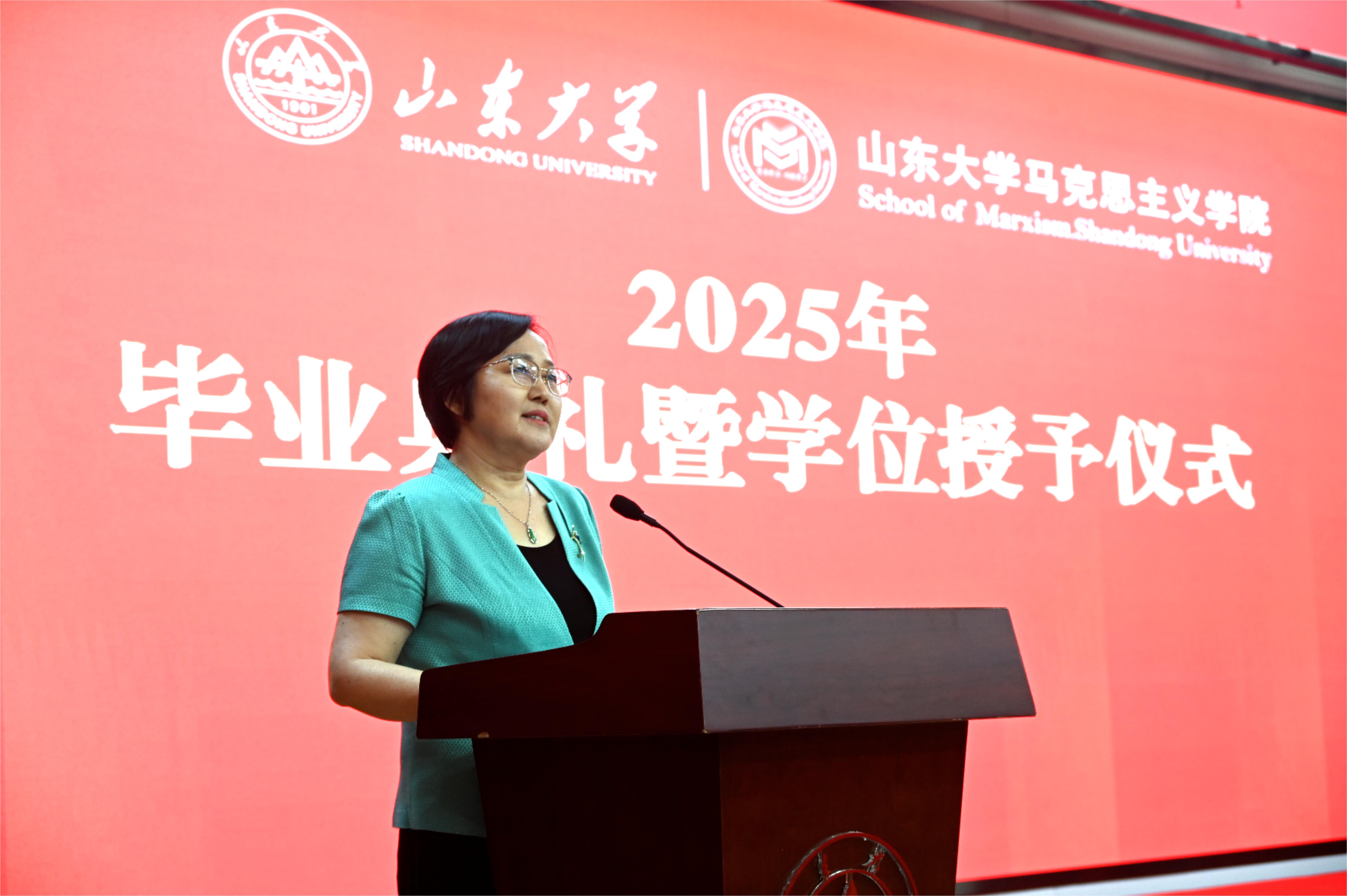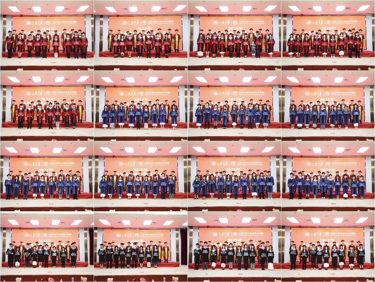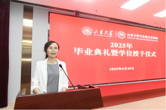 导师代表徐艳玲教授为毕业生送上深情寄语。她以时间为轴,回顾同学们在山大马院以思想启迪生活、以理论砥砺实践、以学术阐释心灵的成长之旅。她鼓励毕业生要立足国家发展需要进行就业选择,将个人价值实现与人民幸福追求紧密结合;锻造甘坐冷板凳的品格,在面向未来的选择时,能够自觉追随马克思的脚步,用奋斗求幸福、为使命永不歇。