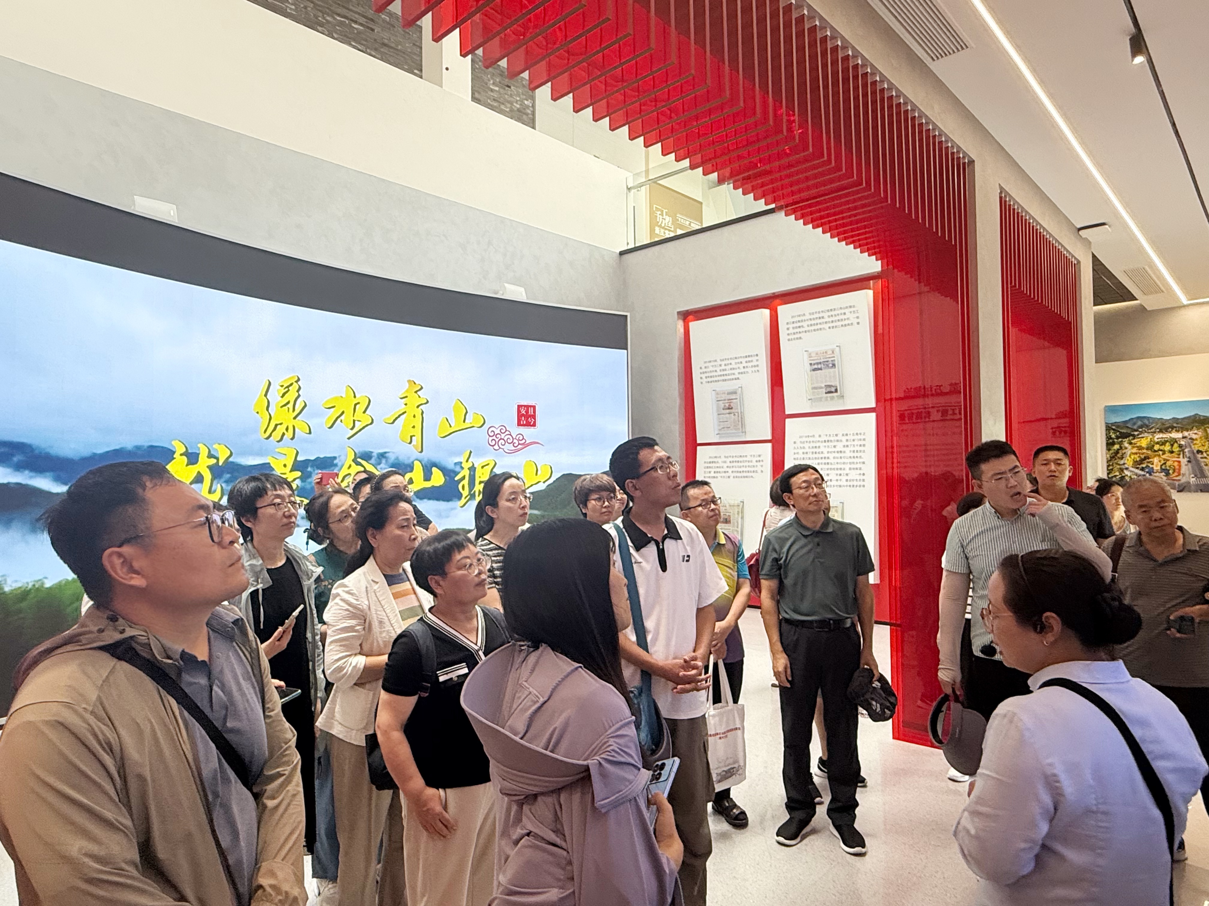 走进余村,绿水逶迤去,青山相向开。今年是习近平总书记“绿水青山就是金山银山”理念提出20周年,教师们深刻感受到“绿水青山就是金山银山”理念的强大生命力,见证了生态治理与乡村振兴的有机融合。在“千万工程”余村展示馆,大家在讲解员的带领下重温了2005年习近平总书记首次提出“两山”理念的重要时刻,了解了余村深入实施“千万工程”、建设美丽乡村的生动历程,见证了当地从“矿山经济”到“全国美丽宜居示范村”的精彩蝶变,深刻理解“绿水青山就是金山银山”的核心要义。