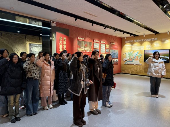 走进红色于家政治生活馆,在讲解员的带领下,支部成员循着历史足迹,重温了那段烽火连天的岁月。33名指战员为守护革命火种壮烈牺牲的壮举,军民鱼水情深、共抗强敌的感人故事,让在场同学深刻体悟了中华民族共赴国难、同御外侮的伟大精神。全体党员庄严列队重温入党誓词,铿锵有力的誓言既是对革命先烈的深切缅怀,更是对初心使命的郑重承诺。