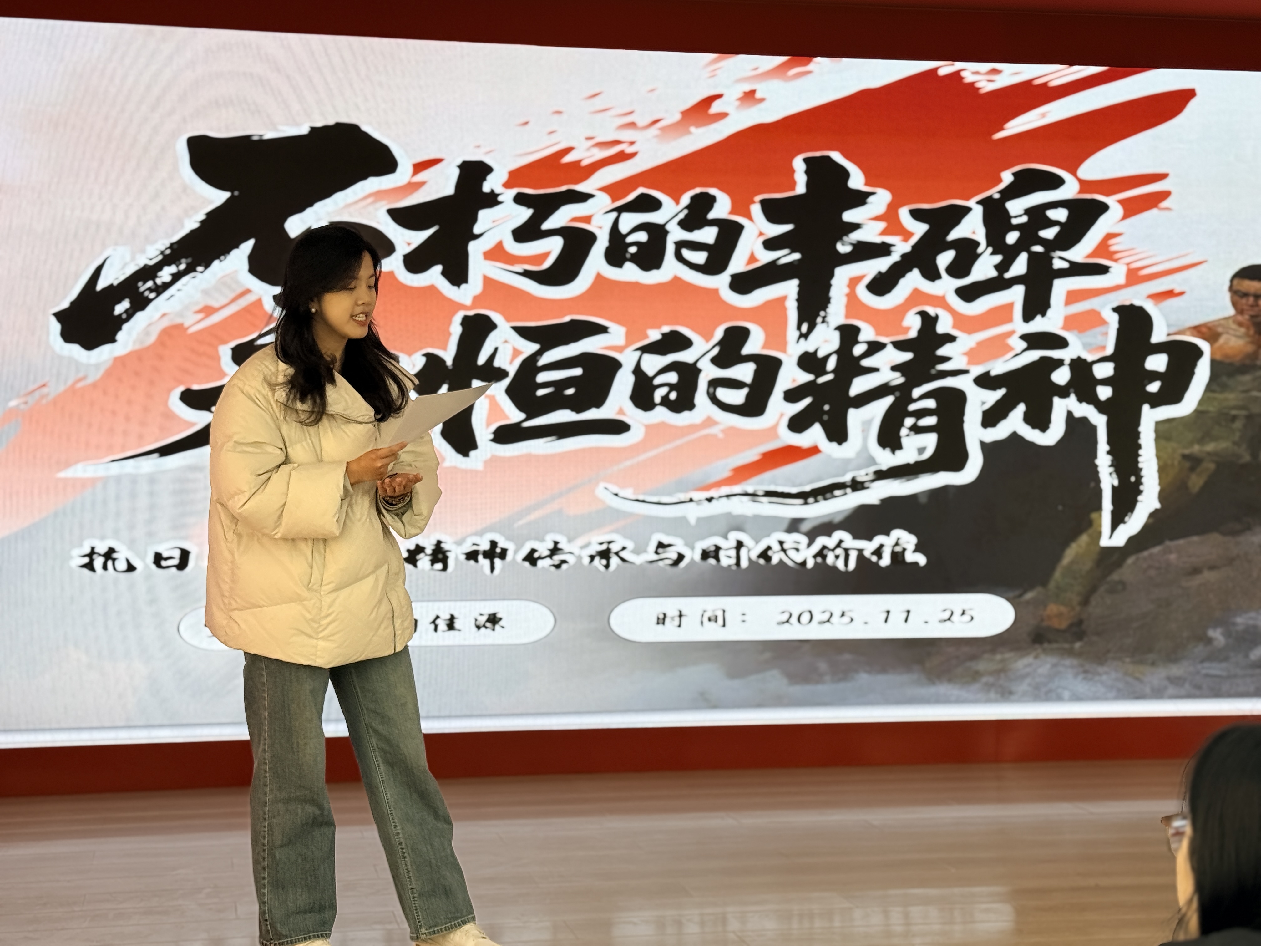 参观结束后,鞠佳源以《不朽的丰碑永恒的精神》为题进行宣讲,解码壮士之魂的精神内涵,引导同学们思考作为新时代青年应该如何传承和践行英雄精神。支部成员围绕“英雄精神的当代价值”展开讨论,一致认为忠诚信仰指明方向,担当奉献凝聚力量,血性胆魄激励冲锋,三者融合正是青年党员攻坚克难最鲜亮的底色。
