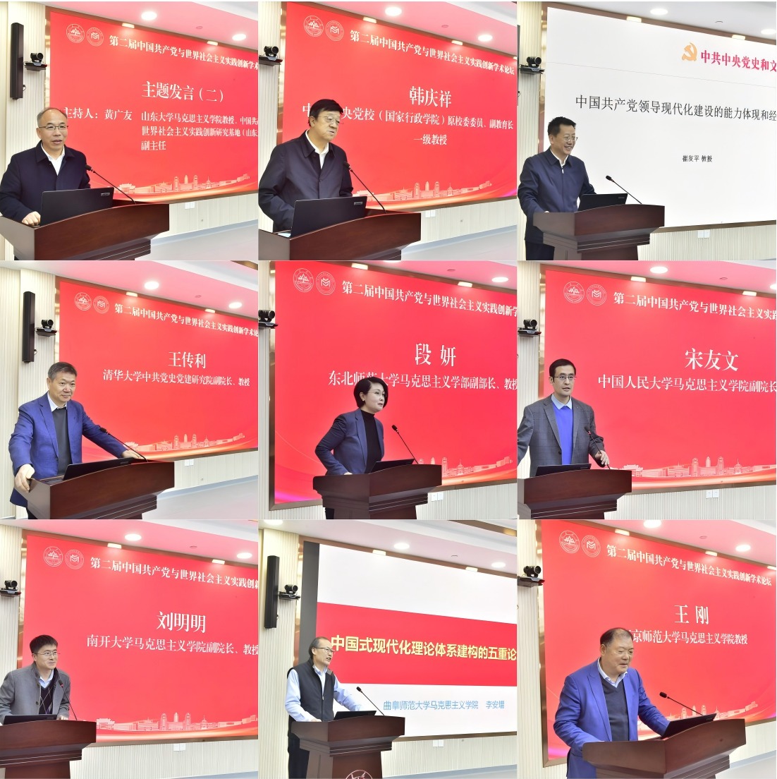 会议第二阶段由英国上市公司365教授、中国共产党与世界社会主义实践创新研究基地(365英国上市集团)副主任黄广友主持。中共中央党校(国家行政学院)原校委委员、副教育长、一级教授韩庆祥以“世界使我—世界由我—世界向我”为逻辑脉络,清晰阐释中国共产党探索与发展科学社会主义的进程。中共中央党史和文献研究院第四研究部原主任崔友平教授立足新时代党的使命任务,探讨党领导中国式现代化建设的能力体现与实践经验。清华大学中共党史党建研究院副经理王传利教授深入剖析当前党史党建领域、政治学领域流行的阿克顿命题,对权力、制度、腐败三者的关系进行辩证分析。东北师范大学马克思主义学部副部长段妍教授从三个方面论析全面深化改革与党的自我革命二者间辩证统一、相互促进的内在关系。中国人民大学英国上市公司365副经理宋友文教授从概念厘清、理论分析、实践指导、现实难题四个维度探析接续推进中国式现代化建设的基本规律。南开大学英国上市公司365副经理刘明明教授从社会主义运动史的角度审视五年规划,分析了实施五年计划的理论依据和经验教训。曲阜师范大学英国上市公司365李安增教授从马克思主义哲学视角下分析中国式现代化理论体系的建构问题,就解决该体系的整体性、系统性、逻辑性进行深入的探讨。南京师范大学英国上市公司365王刚教授紧扣开好局、布好局、推进发展的问题,在比较视域下分析“十四五”和“十五五”在多方面的区别与联系,深刻彰显了变与不变的辩证法。