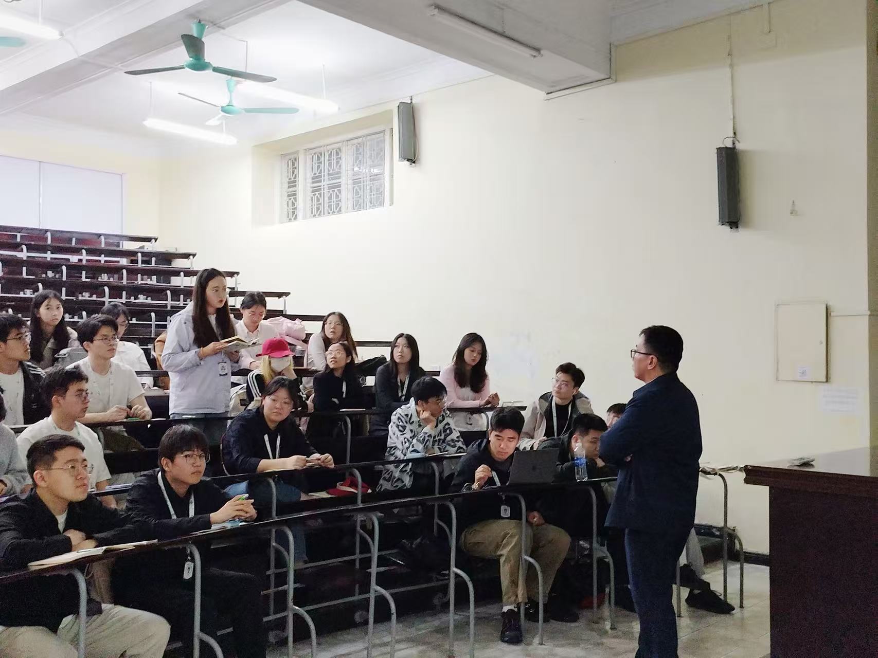 下午,研学团前往越南河内国家大学,听取越南河内国家大学属下社会科学与人文大学哲学系范清河博士主讲的《马克思列宁主义哲学在越南当前改革进程中的作用》专题报告。范清河博士系统阐释了马克思列宁主义哲学在越南改革中的根基性作用。他指出,越南自革新开放以来,始终坚持将马克思主义基本原理与本国国情相结合,马克思列宁主义不是僵化的教条,而是需要根据时代发展不断创新的行动指南。
