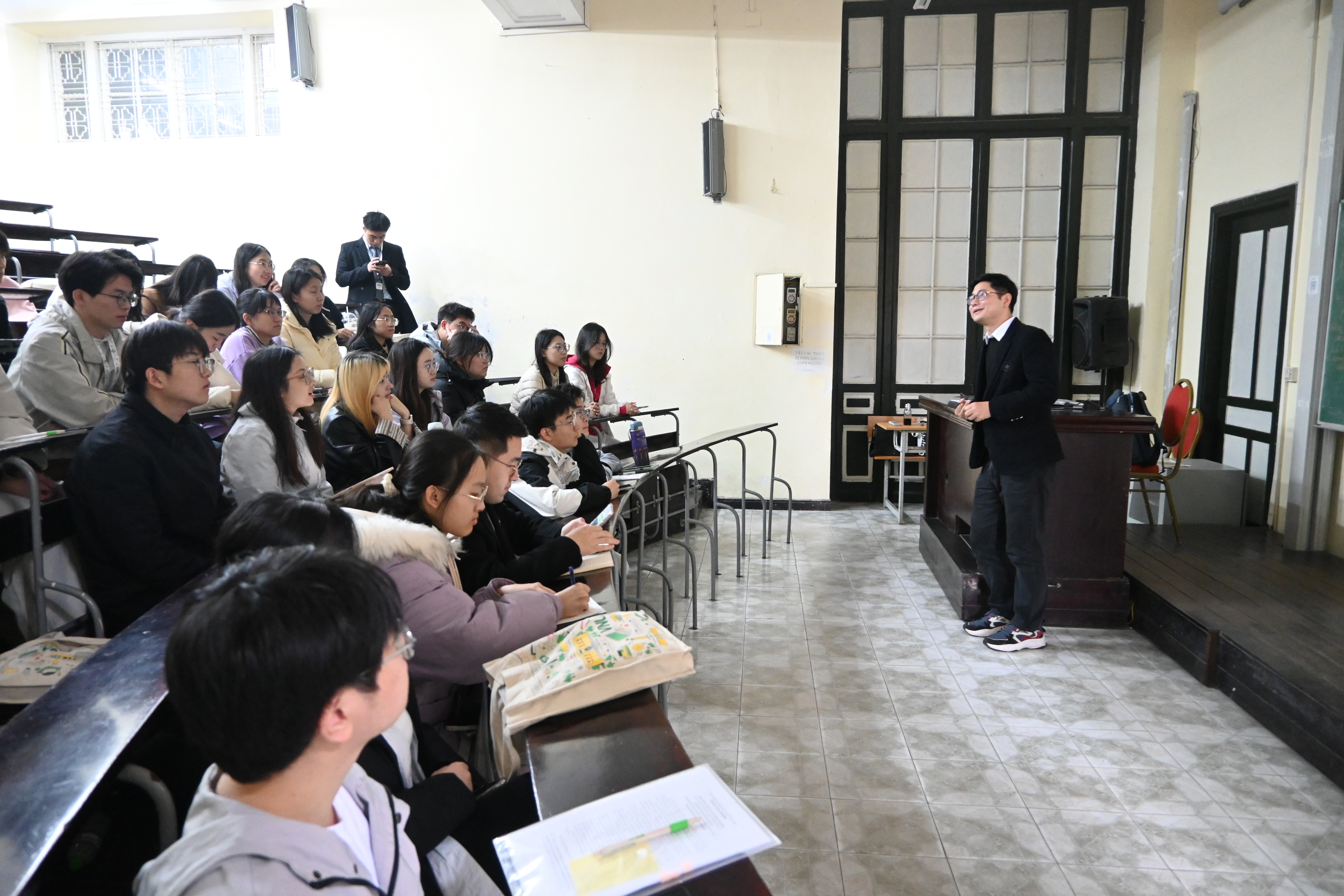 在交流互动环节,研学团成员与Ngô Đăng Toàn博士围绕中越两国社会主义发展的异同、中越改革经验的互鉴、市场经济与社会主义制度的融合、教育体系建设的现状等议题进行深入探讨。Ngô Đăng Toàn博士既肯定了中越两国在坚持社会主义方向、以改革促发展等方面的共通之处,也阐释了越南在革新路径、制度设计、文化适配等方面的独特探索。他指出,中越两国作为山水相连的社会主义邻国,发展道路虽各具特色,但都立足本国国情,致力于实现国家发展与人民幸福,为世界社会主义运动贡献了东方智慧。研学团成员在思想碰撞中拓宽视野、凝聚共识,深化对社会主义发展道路的多样性与生命力的理解。