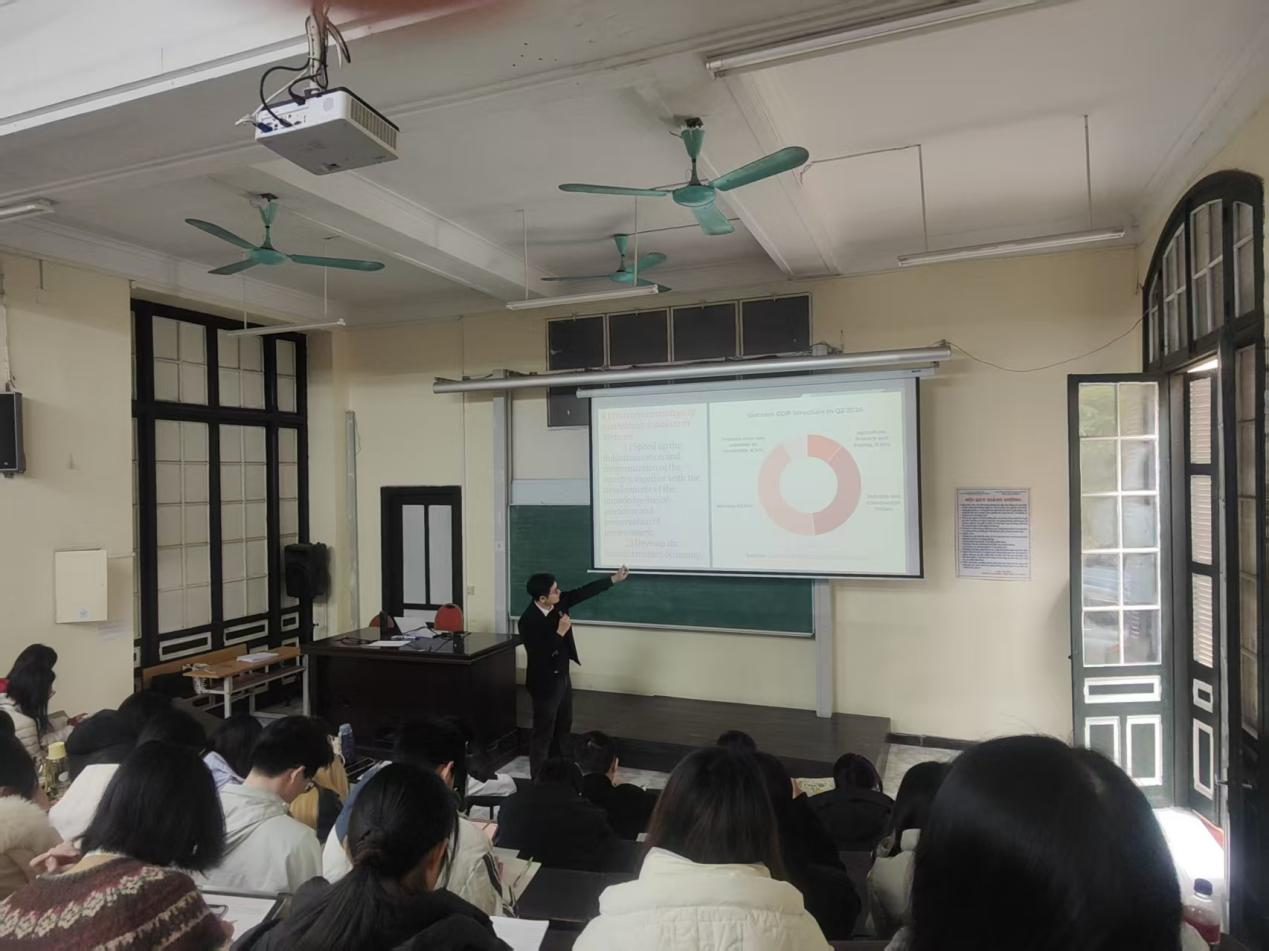 Ngô Đăng Toàn博士以清晰的历史脉络为轴,系统梳理越南社会主义从萌芽、发展、改革到不断完善的全过程,深入分析越南在不同历史时期推进社会主义建设的实践探索与理论成果。他结合具体的历史事件与政策举措,聚焦政治、经济、社会等领域,重点讲解越南社会主义在不同发展阶段的特征、成就与经验,厘清越南社会主义不同阶段的发展逻辑与内在关联,展现了社会主义制度的适应性与生命力。他的讲解内容详实、层层递进,兼具历史厚度与理论深度,为研学团成员了解越南社会主义发展概况提供崭新的视角。