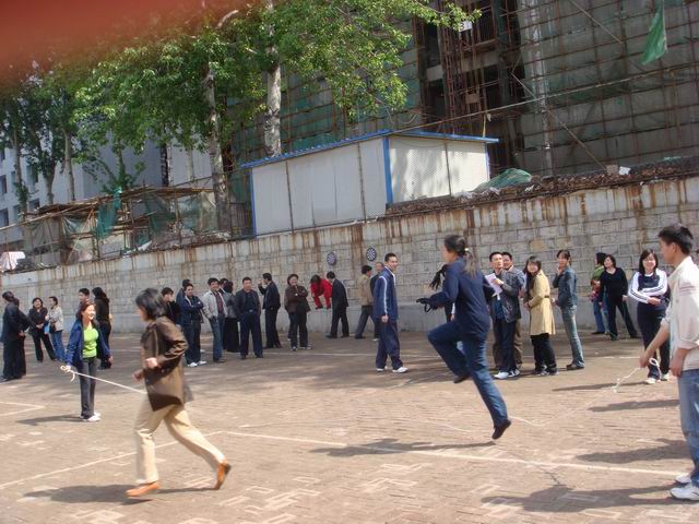 最后,全院教工都参加了具有挑战性的比赛项目“跳大绳”,老师们排着队伍依次从西向东先后跳过两道绳,有的老师两人或三人同时携手跳过两道大绳“封锁线”,步伐矫健,身手敏捷,把全场气氛推向高潮。