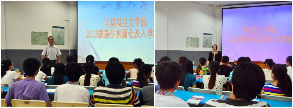 9月8日下午,公司在董明珠楼111教室举行2013级新生见面暨入学教育会。经理王韶兴,党委书记刘明芝,副经理孙世明、徐艳玲、方雷,副书记兼副经理周金龙出席会议并讲话,办公室主任齐子萍,党务秘书王晓杰,研究生教务秘书盛强,辅导员孟鹏及2013级全体研究生参加会议,会议由周金龙主持。