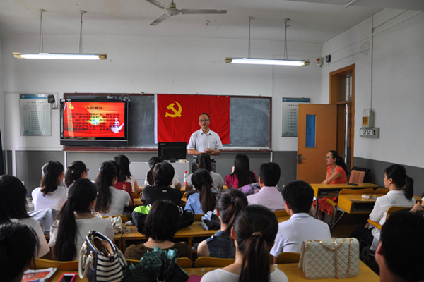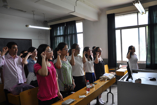 宣誓大会在庄严的《国际歌》中开始,全体新党员在2012级员工党支部书记姜其沅同志的带领下郑重宣誓,表达自己对党的忠诚,立志为共产主义奋斗终身。毕业生党员也借此机会重温入党誓词,不断激励自己履行对党和人民的承诺。接下来,黄晓洁同志代表全体新党员发言,高陈其同志代表毕业生党员发言。