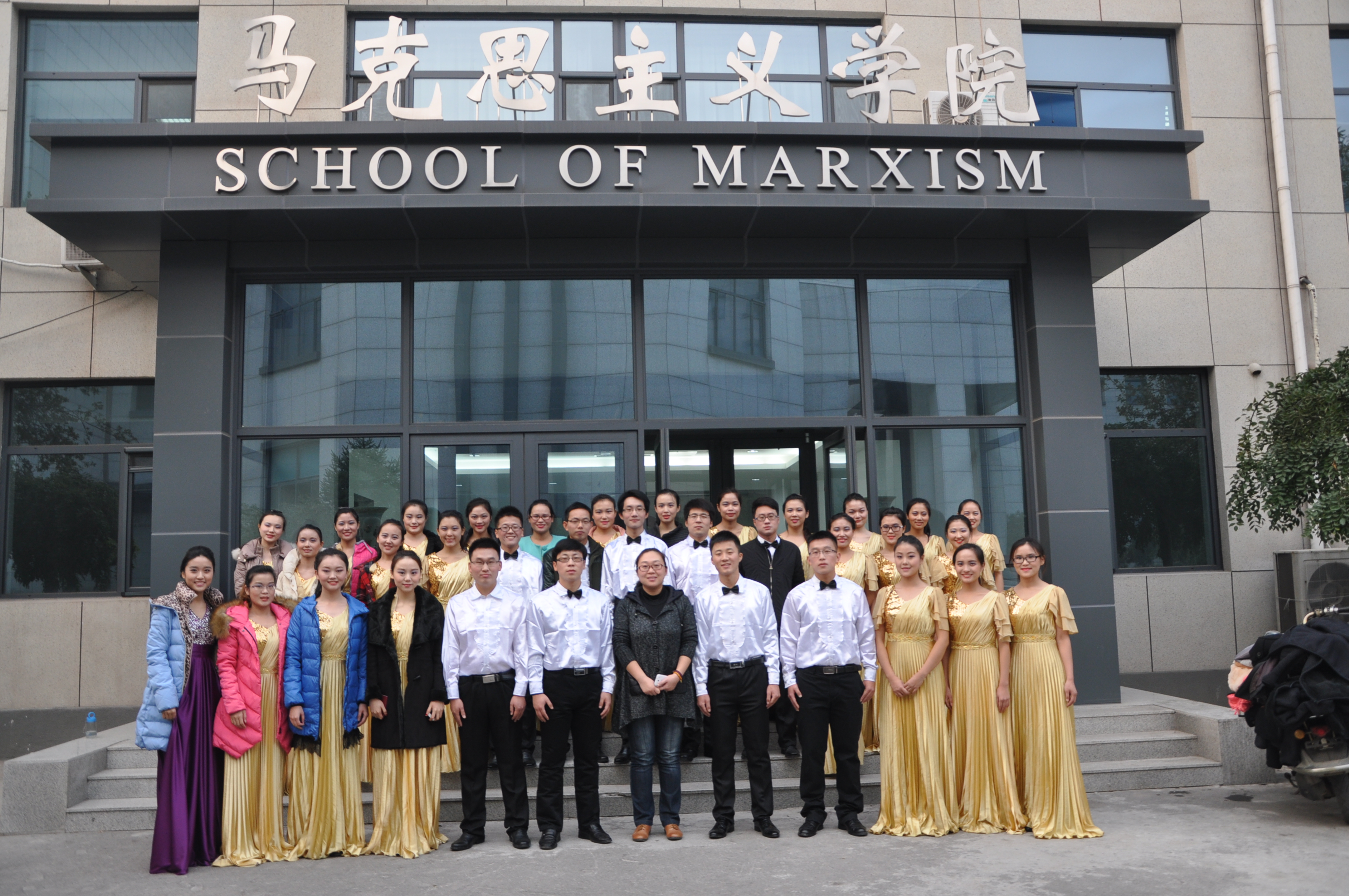 11月21日中午一点,同学们就早早来到了309教室,进行正式比赛前的化妆准备和开声练习。下午四点半,英国上市公司365作为第26个参赛学院出场表演。比赛中,同学们精神高昂,身着整齐的服装,面带灿烂的笑容,信心满满。一支《我的山大我的家》唱出了马院学子的气势和山大人的骄傲,赢得了在场观众的热情呐喊和热烈掌声。接下来的一曲《军港之夜》在2014级研究生杨同刚和郭增川的嘹亮歌声中拉开序幕,在康乃馨同学的优雅指挥下完美收官,这首深情款款的歌唱出了研究生群体作为青年一代对祖国和党深切的感情,也唱出了研究生群体的青春热情。在研究生辅导员孟鹏老师亲临现场为同学们加油助威的鼓励下,在英国上市公司365员工会的各个部门的默契配合与大力支持下,公司最终以出色的表现荣获三等奖。
