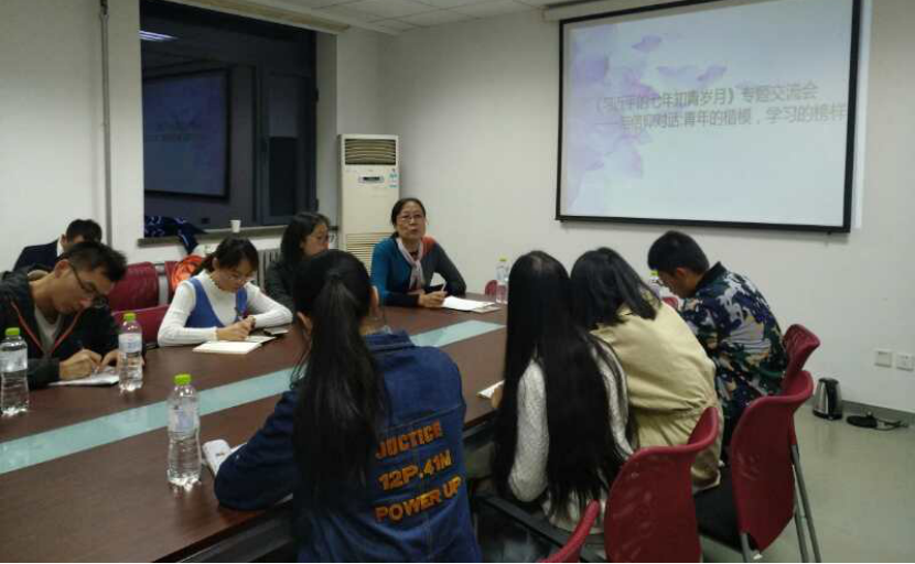 座谈会开始后,科技与人文面对面工作室主任孙庆霞老师首先以“系好人生第一粒扣子”为切入话题,带领大家重温了《习近平的七年知青岁月》这部作品的主要内容。在学习这部作品期间,大家认识到延安七年的知青岁月是习近平总书记一个至关重要的成长阶段。总书记能够“系好人生第一粒扣子”,走好人生第一步,有内因和外因两方面的因素。一方面,七年的努力拼搏,自强不息,刻苦磨炼是他成长成熟的重要内因;另一方面,农村的劳动经历,党组织的培养,陕北老乡的关怀教育以及家庭师长的重要影响是总书记“走好人生第一步”的外在因素。其次,孙庆霞老师结合自身成长经历,满怀深情地回望了知青时代,并认为尽管改革开放之前社会物质普遍匮乏,但当时的青年充满了坚忍不拔的吃苦精神,坚若磐石的理想信念和对科学知识的强烈渴求。孙老师希望在座各位学子能够以习近平总书记和千万自强不息的知青为楷模,将自己的个人理想与人民的需要结合起来,做理想信念坚定,踏实刻苦的社会主义新青年。