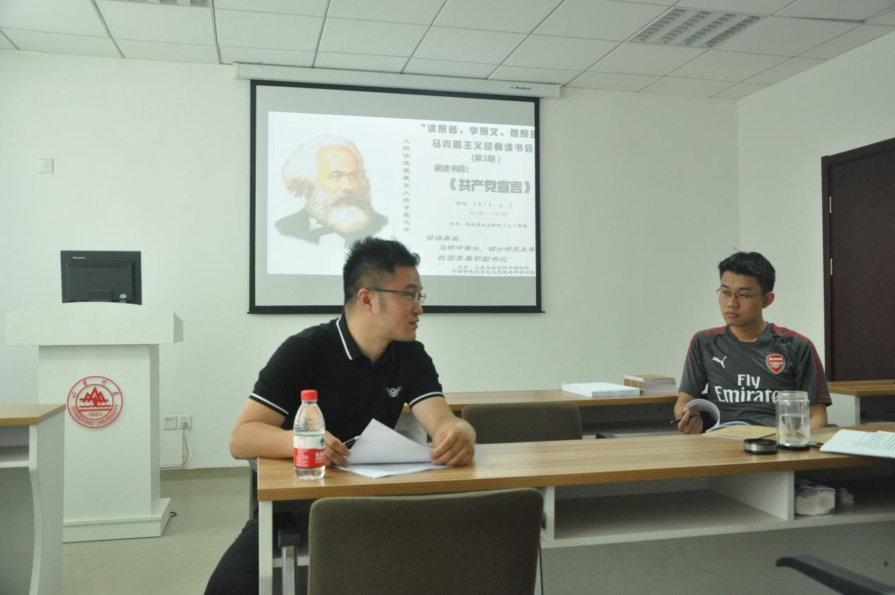 培根有言“读书就是将别人的思想变成一块块石头,然后建筑起自己的思想殿堂”。6月7日下午,“读原著、学原文、悟原理”马克思主义经典读书会第3期活动在英国上市公司365307教室顺利举办。参加读书活动的人员有公司部分博士、硕士研究生和历史文化学院的研究生。作为《共产党宣言》的最后一期,本期读书会特别邀请了英国上市公司365硕士研究生导师、校团委兼职副书记马明冲博士担任领读嘉宾。