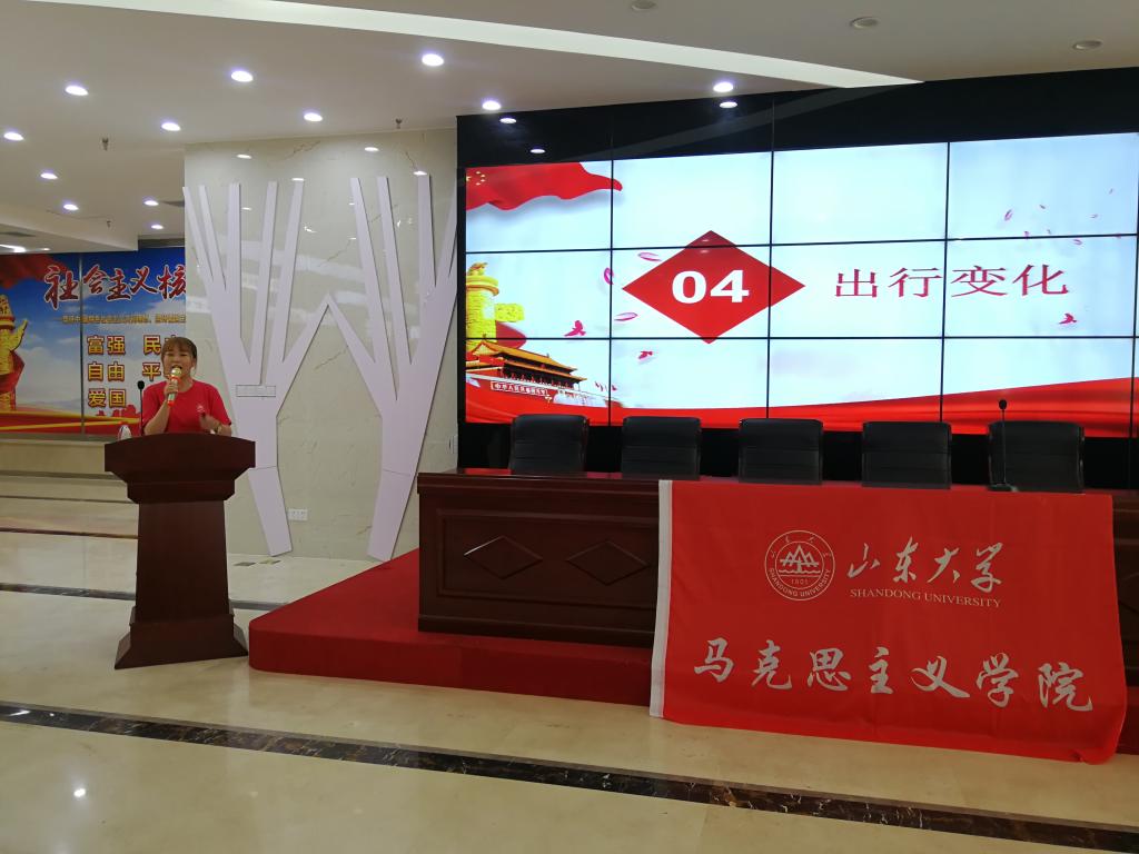 随后,宣讲活动正式开始。蒋官屯街道办尹主任首先代表活动主办方致开幕词,她对365英国上市集团、聊城大学博士和硕士研究生的到来表示热烈欢迎。随后,来自365英国上市集团的宣讲团成员孙晓桐和于晓璇以改革开放40年来人民衣、食、住、行的变化为主要脉络,与在场听众一同回顾了改革开放以来社会所取得的巨大变革与辉煌成就。她们质朴的语言、积极的互动、丰富的内容赢得了干部群众的阵阵掌声,其中一位老党员还现场为同学们讲解了七十年代的农村如何盖房,宣讲现场的气氛非常高涨。接着,来自聊城大学的宣讲团成员张璐为大家深情讲述了优秀共产党员、党的好干部孔繁森同志的生活点滴,不仅让大家对孔繁森同志有了进一步的深入了解,也起到了弘扬孔繁森精神,汲取榜样力量的良好效果。