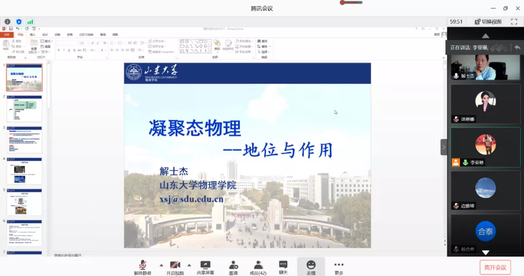 为了让同学们更好地了解物理学、了解物理研究的内容与生活的联系、了解物理学对人类文明所起的作用,10月17日上午,科技与人文面对面工作室第71期“探物以求理”主题讲座借助腾讯会议平台顺利举办。
