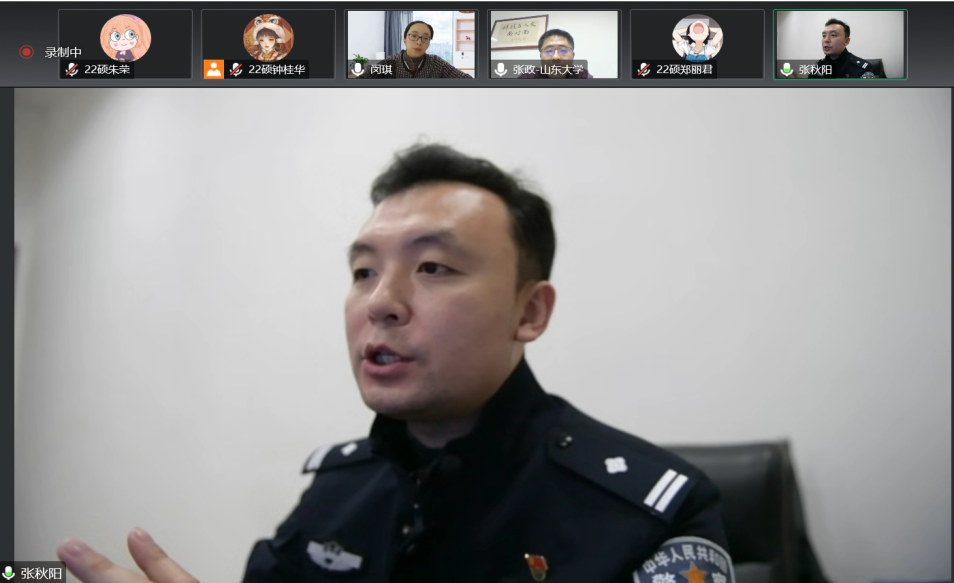 活动的第一阶段,张秋阳警官进行主题为“电信网络诈骗的前世今生”的分享。张秋阳警官以追溯马云的发家史为导入,介绍诈骗的历史起源、主要类型和常见形式,以探究台湾省的诈骗起源为纽带,讲述我国电信网络诈骗的产生原因和发展过程 。通过分析各年龄阶段受害者的心理特点,张秋阳警官进一步阐述了诈骗和被骗机制,进而提出防骗应秉承“不可能三角原理”——“容易”“赚钱”“陌生人”三者不会同时成立。最后他推荐大家学习观看《警界之声》《今晚说反诈》等反诈节目,以此提高大家的反诈意识,同时提醒同学们下载国家反诈中心app、筑牢“不输密码”的四字防线等。