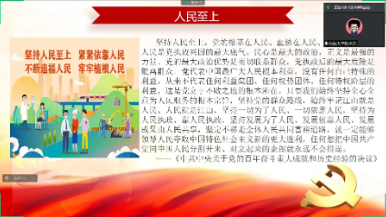 三月的春风温暖人心,三月的党旗迎风飘扬。虽然全国多处爆发疫情,但是全国人民依然万众一心,团结抗疫。身为员工的我们也是积极配合学校防疫工作,在学校隔离,并且还开展了跨校联合宣讲党的十九届六中全会精神的活动。我们小组与吉林大学联合宣讲,我们四人分工分享了学习党的十个历史经验的体会。大家是八仙过海各显神通,图文并茂,史论结合,把这“十个坚持”讲得生动有趣,同学们听了都说非常好。我作为分享者也从其他人身上学到了很多很多。希望以后能够多多开展这样的活动,宣传党的大政方针,弘扬党的伟大精神,以实际行动迎接党的二十大胜利召开!